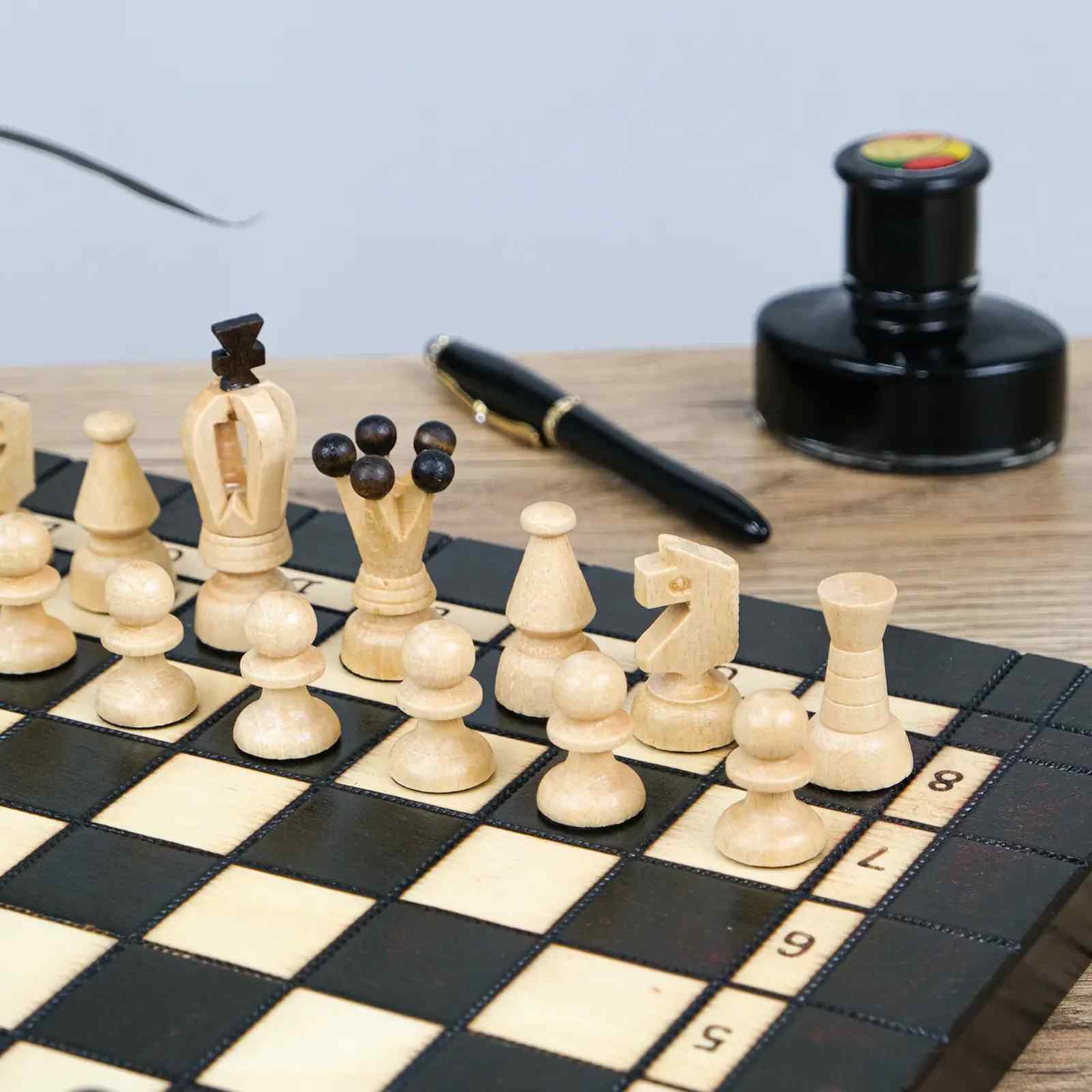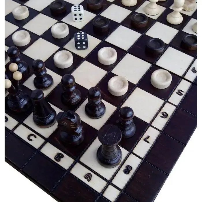 У комплект входять шахові фігури, а також 30 фішок для нард (по 15 кожного кольору), що дозволяє використовувати набір і для гри в шашки.