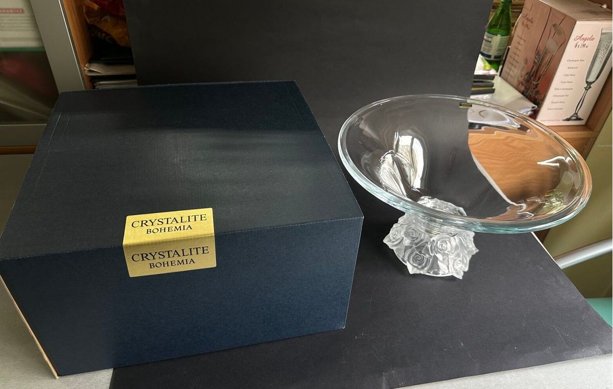 Фруктовница на ножке хрустальное стекло Bohemia Frost 35.5 см