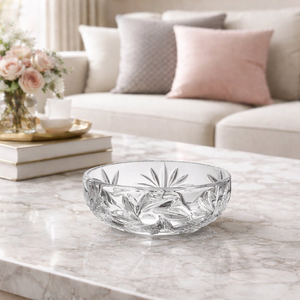 Этот предмет сервировки идеально подойдёт для подачи конфет, орехов, сухофруктов или мини-десертов. Конфетница прекрасно сочетается с другой хрустальной посудой коллекции и может стать частью стильного праздничного стола. Также её можно использовать как самостоятельный акцент — например, в гостиной или на журнальном столике.