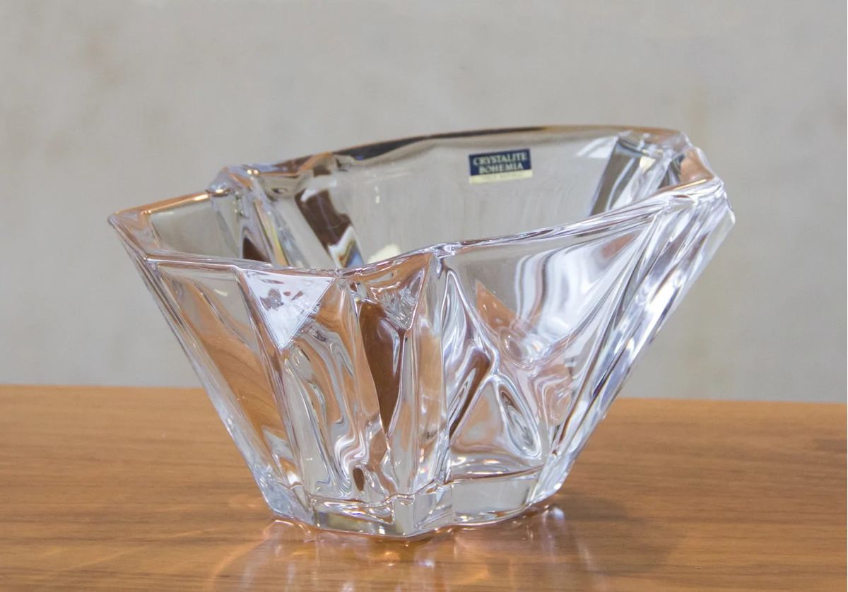 Конфетница от чешского производителя Crystalite Bohemia изготовлена из бессвинцового хрусталя. Обладает исключительной прозрачностью, светопреломлением и блеском в сочетании с лёгкостью, прочностью и возможностью мытья в посудомоечной машине без последствий.