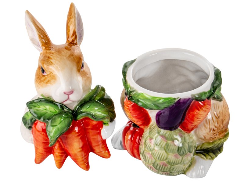 Конфетница Bunny Jar — это очаровательная фарфоровая фигурка, сочетающая в себе практичность и праздничный декор. Кролик с охапкой сочной моркови создаёт атмосферу уюта и тепла, напоминая о весне, природе и домашнем спокойствии.