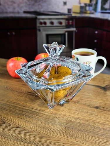 Храните конфеты или орехи под рукой в этой прозрачной хрустальной посуде с подходящей крышкой. Эта тарелка, изготовленная из материалов, не содержащих свинца, надежно удерживает продукты и выскакивает в посудомоечную машину, обеспечивая быструю и легкую очистку.