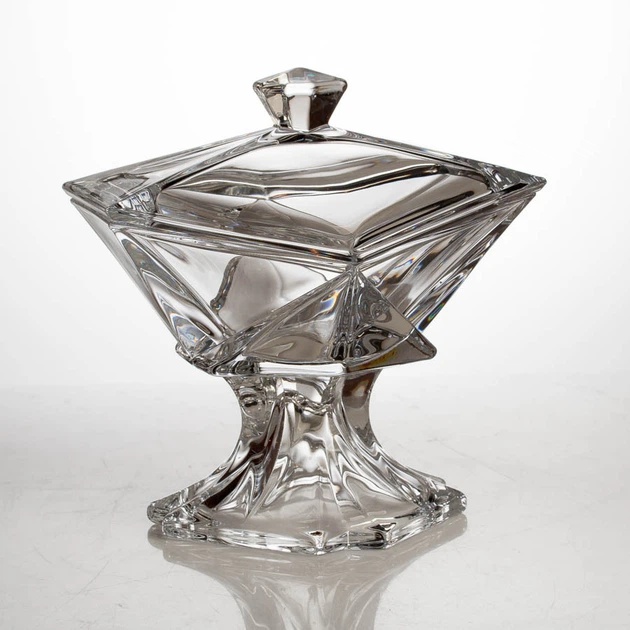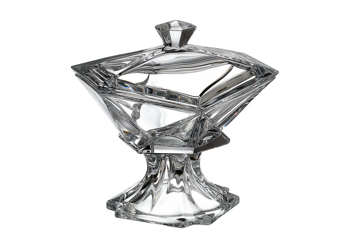 Конфетница из богемского стекла с крышкой на ножке Origami BOHEMIA 23,5 см
