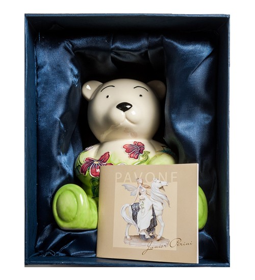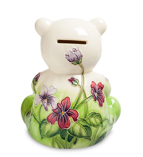 Копилка «Мишка» без сомнений станет любимой копилкой вашего ребенка. Этот мишка настолько симпатичен, что влюбиться в него просто невозможно. Он радует глаз своей превосходной отделкой. Яркие цветы удивительным образом сочетаются с нежным бело-зеленым фоном. Здесь нет каких-то изысканных линий, они достаточно простые. Также нет никаких особенных дизайнерских решений, но он все равно привлекает внимание своей простотой.