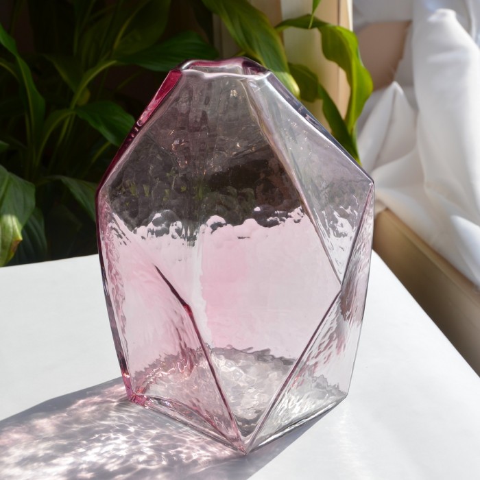 Красивая ваза из стекла розовая "Пикадили" 23 см
