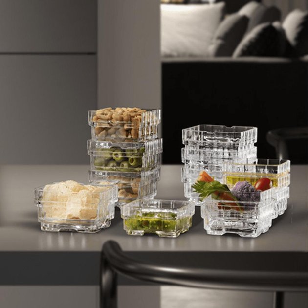Коли на столі з’являється скло колекції STACK, атмосфера сервірування одразу змінюється. Лаконічні й водночас виразні форми привертають погляд, відбивають світло та створюють ефект дорогого ресторанного антуражу. Креманки ідеально поєднують практичність та естетику, перетворюючи кожну вечерю чи свято на маленьку гастрономічну церемонію.