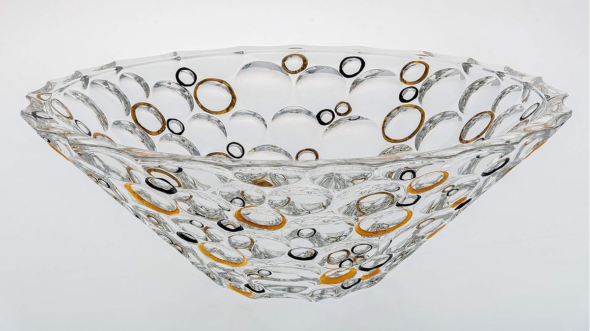Кришталева фруктівниця Богемія Lisboa Black and Gold 30 см