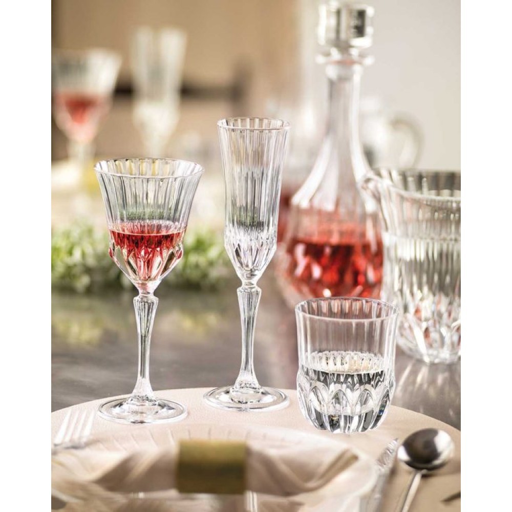 Колекція Adagio від італійської фабрики RCR виготовлена з інноваційного екокришталю (Eco-Crystal) – сучасного матеріалу, що поєднує в собі елегантність класичного кришталю та турботу про довкілля. Він абсолютно безпечний, не містить свинцю, проте вирізняється винятковою прозорістю, сяйвом і міцністю. У колекцію входять вишукані келихи для вина (220 і 280 мл), витончені келихи для шампанського (180 мл), елегантні рюмки (80 мл), стильні склянки DOF 350 мл та HB 400 мл, а також графини й набори для віскі, які створюють гармонійний ансамбль для будь-якого столу.