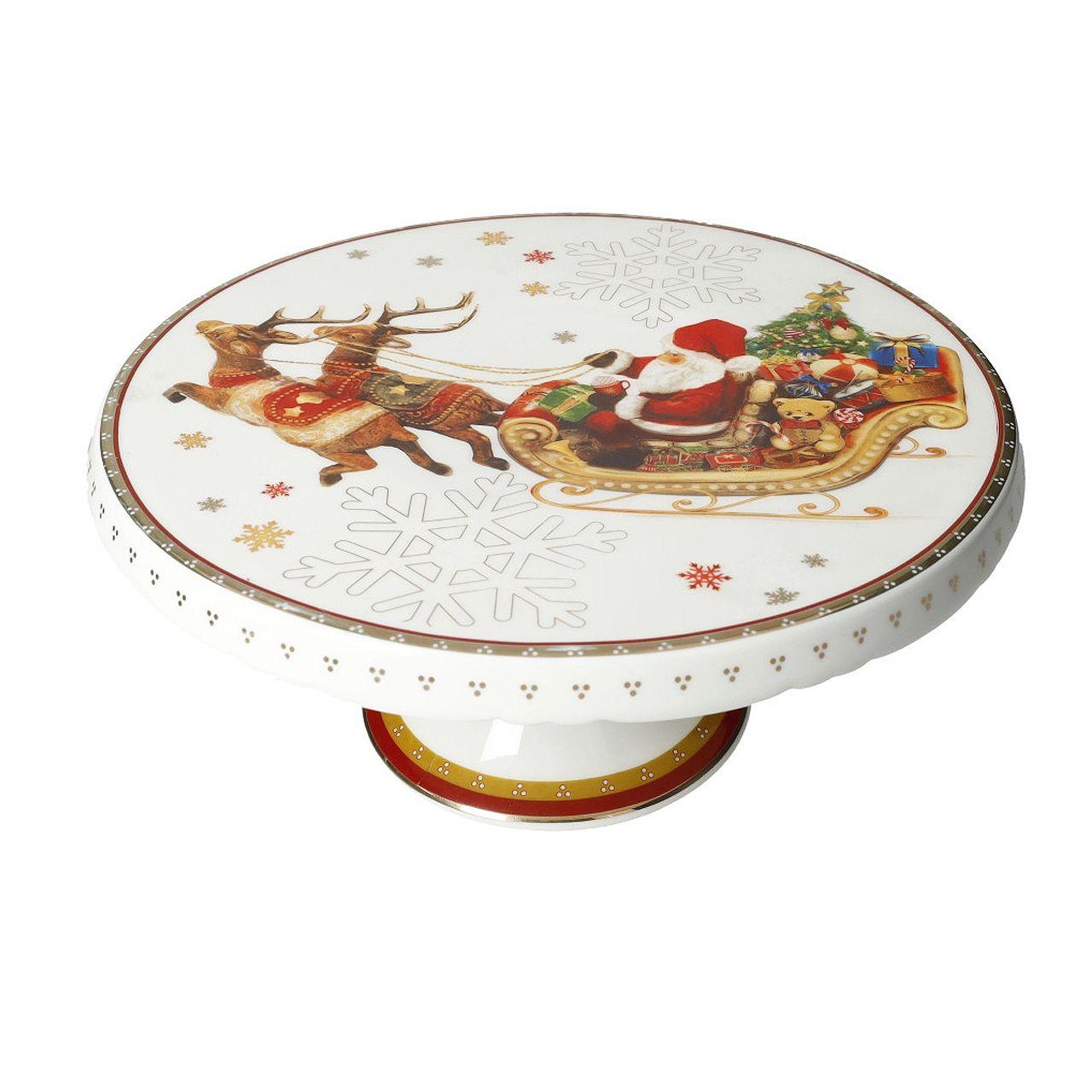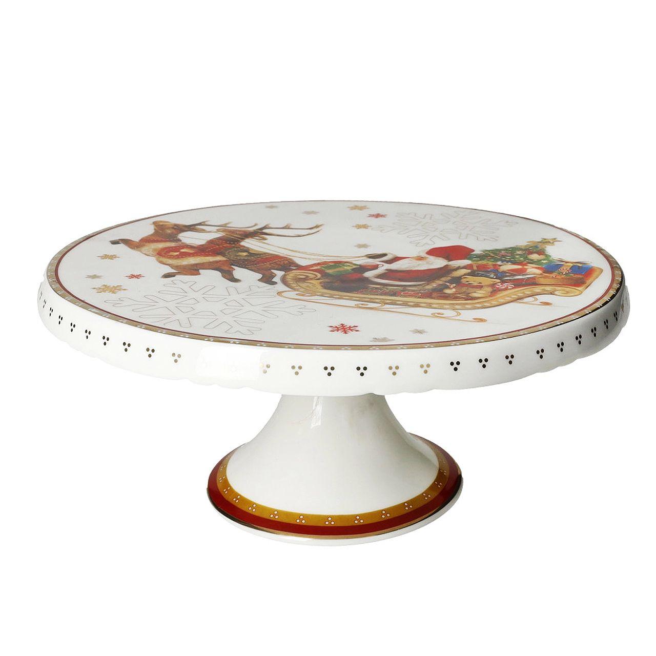Кругла новорічна тортниця з білого фарфору Christmas 20,5 см