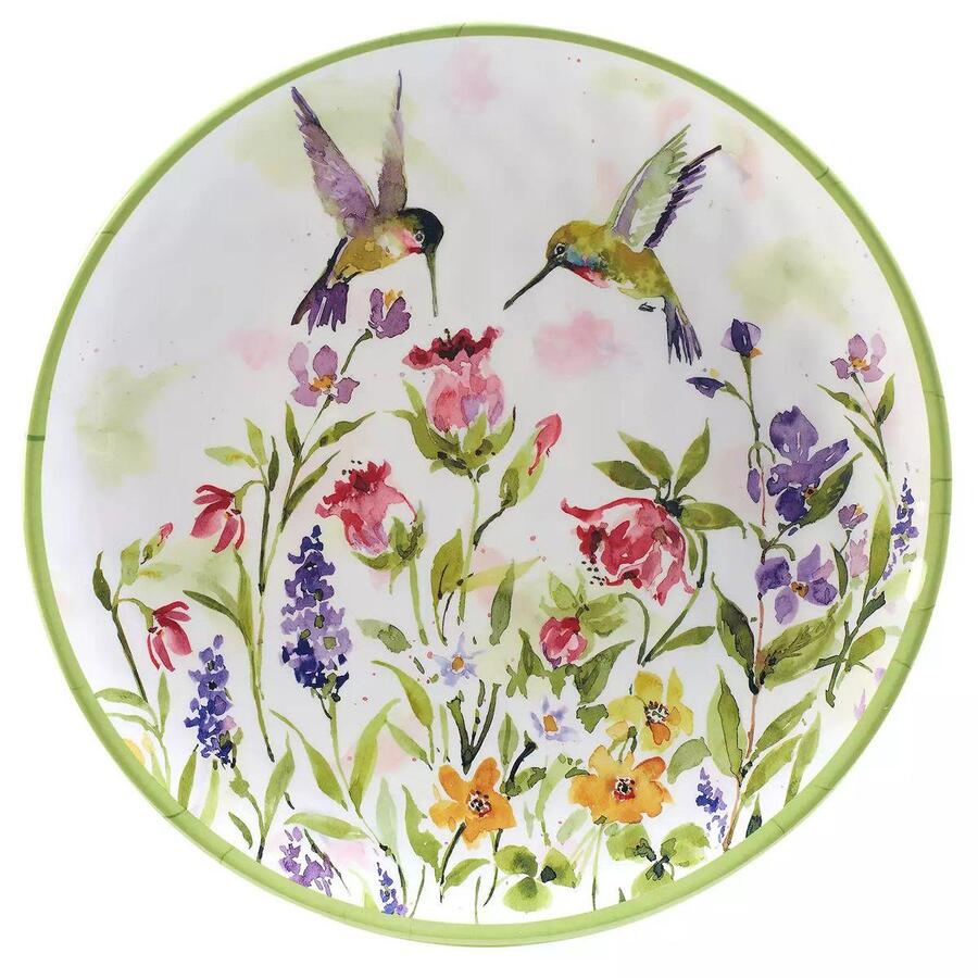 Круглое блюдо из меламина с изображением птичек "Колибри" от Certified International – это элегантный элемент сервировки, который добавит вашему столу яркости и весеннего настроения. Красочные изображения колибри, порхающих среди цветущих полей, создают атмосферу легкости и гармонии. Благодаря прочному и легкому меламину, блюдо отлично подходит как для повседневного использования, так и для праздничных мероприятий на открытом воздухе или пикников.