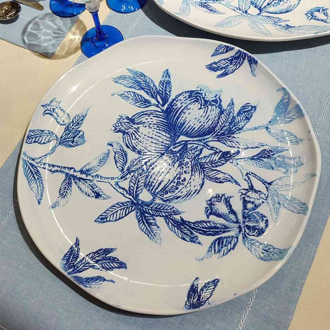 Большое блюдо с оригинальным, слегка размытым рисунком, в котором использованы разные оттенки одного цвета. Голубые линии на белоснежной керамике – свежая прохладная гамма, которая подчеркнет изысканность сервировки, а выразительный насыщенный рисунок создаст торжественный акцент. После трапезы это блюдо не стоит прятать в шкафу – оно станет настенным декором или украшением каминной полки. Гранат издавна является символом семейного достатка и хорошего здоровья, поэтому такой подарок порадует не только красотой, но и смыслом.