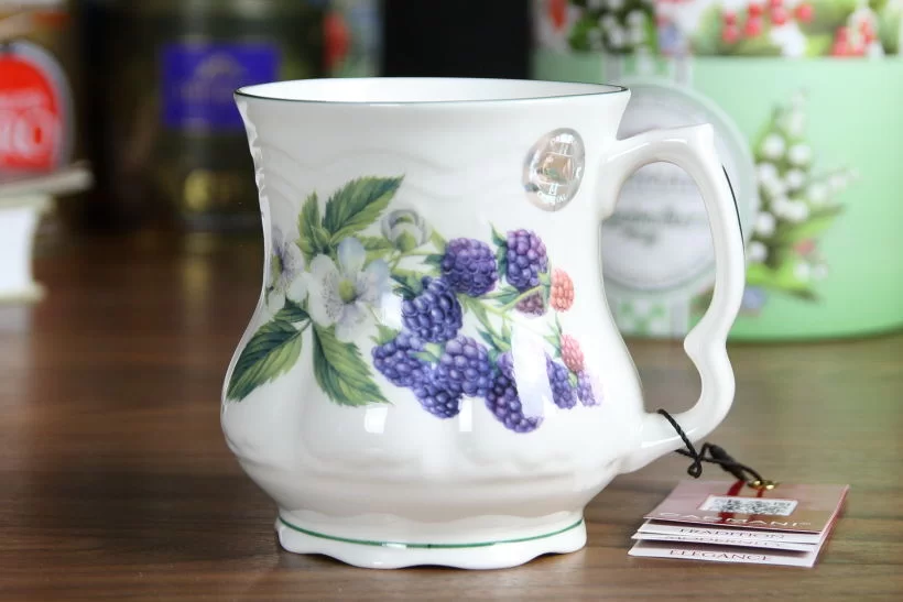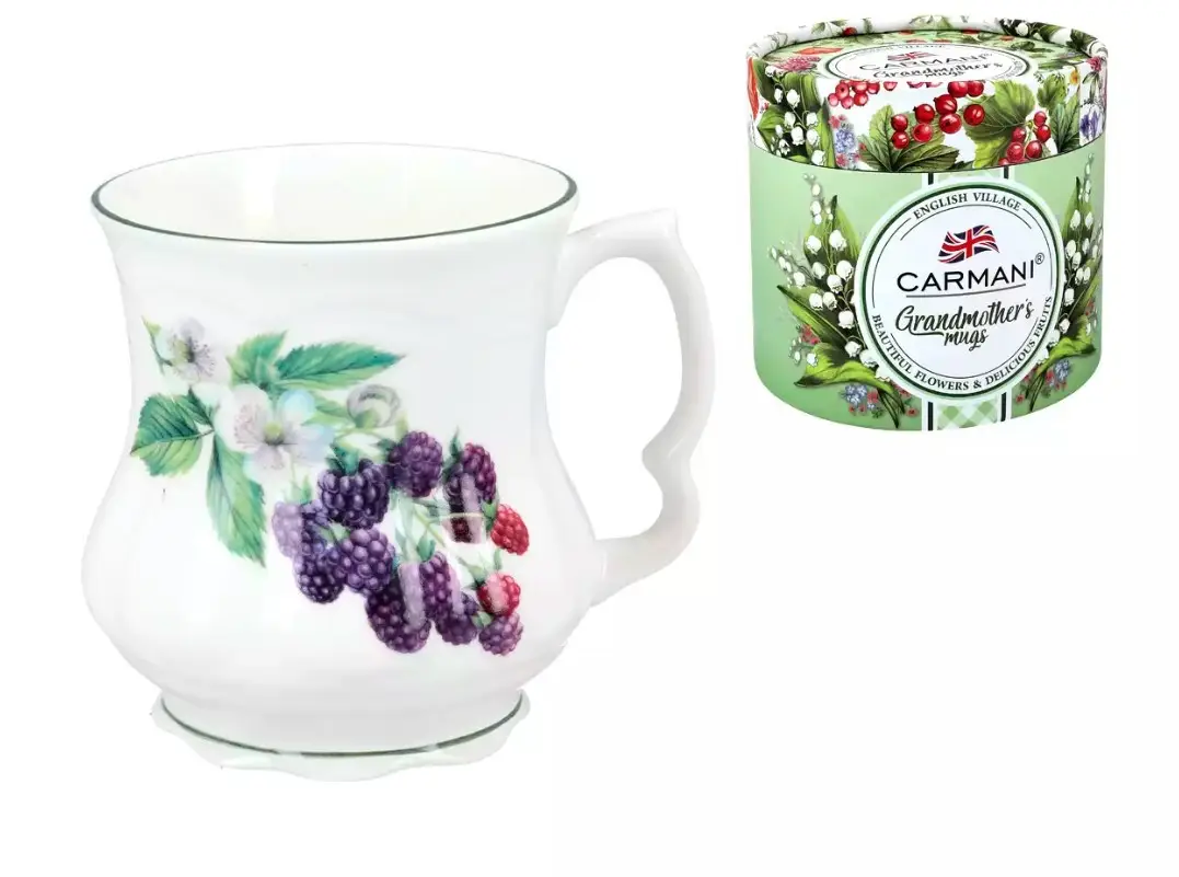 Кружка фарфоровая белого цвета с рисунком и окантовкой Carmani Ежевика 400 мл