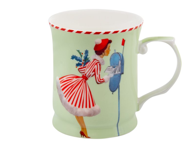 Фарфоровая кружка Miss Christmas 400 мл — это стильный и практичный аксессуар, который создаёт настроение уюта и праздника. На светло-зелёном фоне изображена девушка в красно-белом зимнем наряде, спешащая отправить праздничные письма. Ретро-иллюстрация напоминает атмосферу рождественских фильмов середины XX века, где каждая деталь наполнена теплом и заботой.