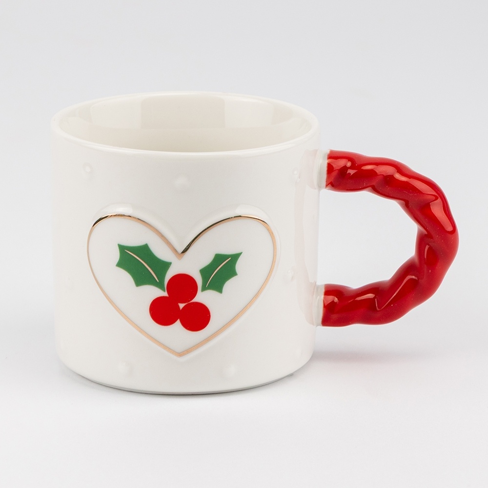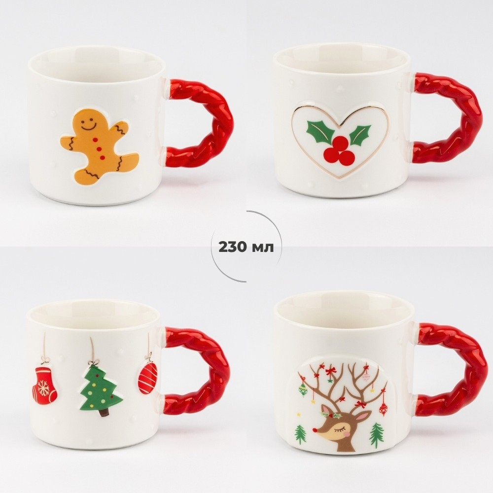 Объём 230 мл идеально подходит для утреннего кофе, ароматного какао или чая на вечернем семейном чаепитии. Удобная фигурная ручка, окрашенная в насыщенный красный цвет, не только практична, но и добавляет особый акцент, превращая кружку в элемент праздничного декора.