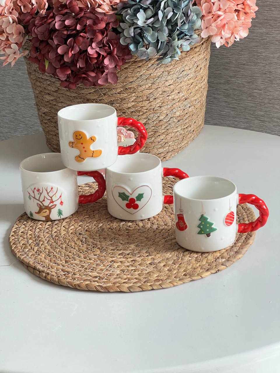 Эти керамические кружки «Christmas Details» — настоящий праздник в каждом глотке. Белоснежная поверхность и яркие, четкие рисунки создают ощущение уютного зимнего утра, когда за окном снег, а в руках — горячий напиток. Сочетание праздничных мотивов — пряничный человечек, ёлочные игрушки, олени и зимние ветви — дарит настроение ожидания праздника и теплоты домашнего очага.