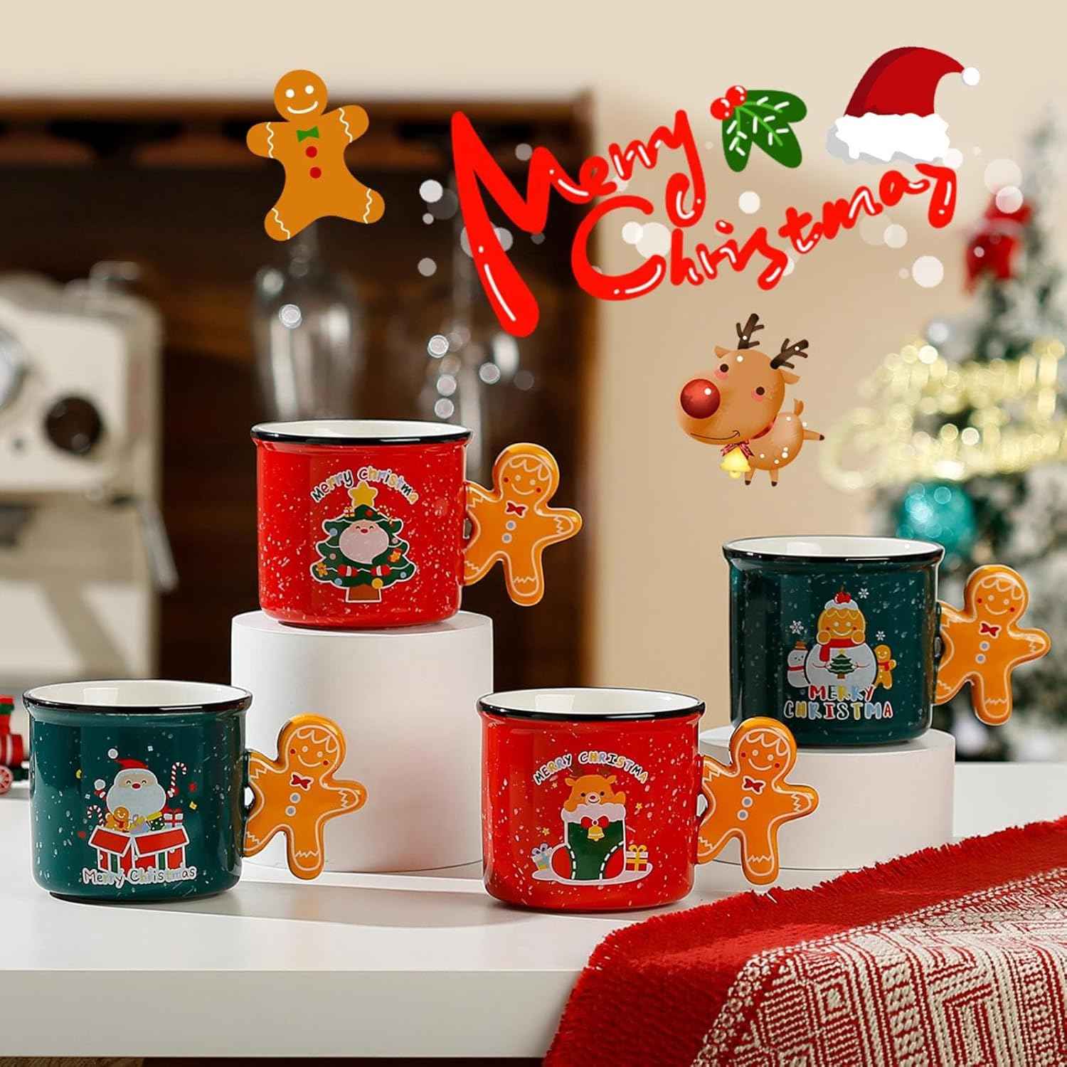 Эти керамические кружки размером 9×8,5 см словно созданы для того, чтобы превратить обычный день в маленький праздник. Яркие красный и зелёный цвета, озорные новогодние принты и ручка в форме пряничного человечка делают каждую кружку настоящим декоративным элементом на вашей кухне. Вы только представьте: утро, аромат свежесваренного кофе, огоньки гирлянды – и эта кружка в ваших руках.