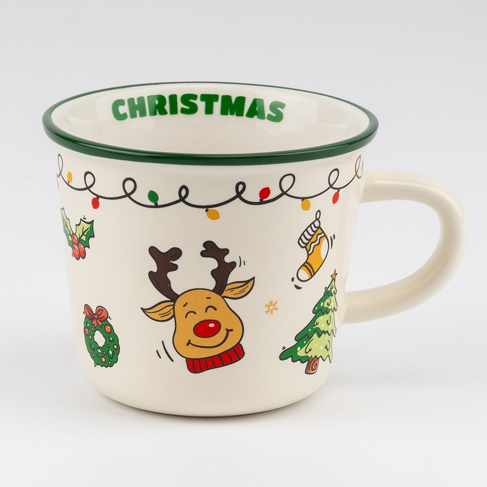 Коллекция Merry Mood – это керамические кружки размером 10×8,5 см и объёмом 350 мл, которые буквально дышат атмосферой Рождества. Каждая кружка украшена милыми зимними рисунками: весёлый Санта, забавный олень, новогодние гирлянды и подарки — всё это создает настроение праздника ещё до первого глотка.