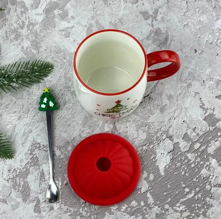Кружка керамическая рождественская с крышкой JingleSip 450 мл