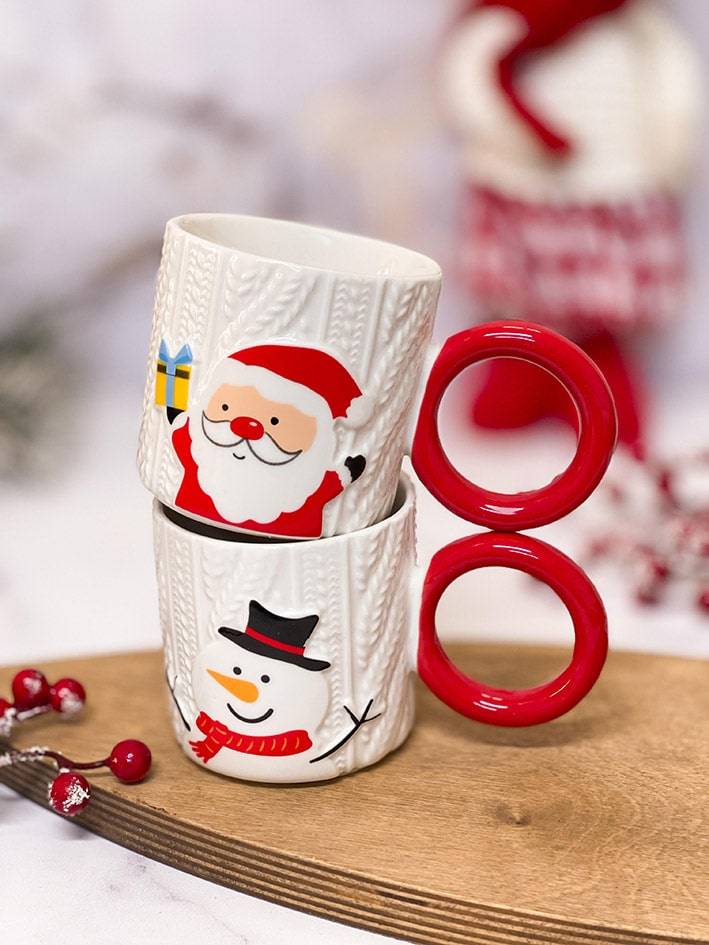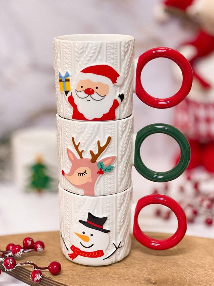 Коллекция Knit Mugs & Saucers — это взрыв праздничного настроения на вашем столе! Керамические кружки с рельефом «вязаного свитера» выглядят уютно и в то же время стильно благодаря объёмным рисункам Санты, оленёнка, ёлки или снеговика. Контрастная кольцевая ручка делает дизайн современным, а яркое блюдце завершает композицию, превращая каждую кружку в маленький праздничный акцент.