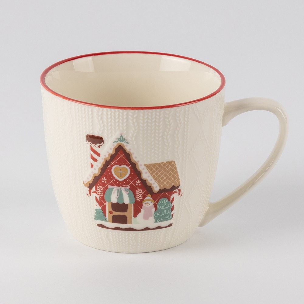 Кружка SweaterMug, 500 мл — это уют в самом сердце зимы. Её рельефный узор напоминает любимый вязаный свитер, а милый пряничный домик на стенке вызывает ощущение настоящей рождественской сказки. Тёплые кремовые тона и аккуратная красная окантовка делают кружку не просто посудой, а настоящим элементом праздничного декора.