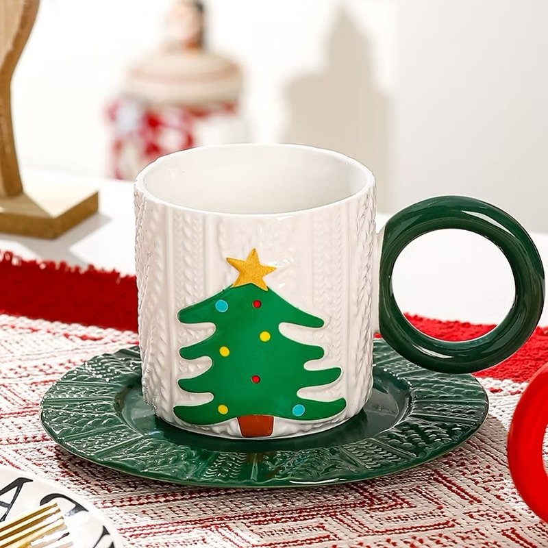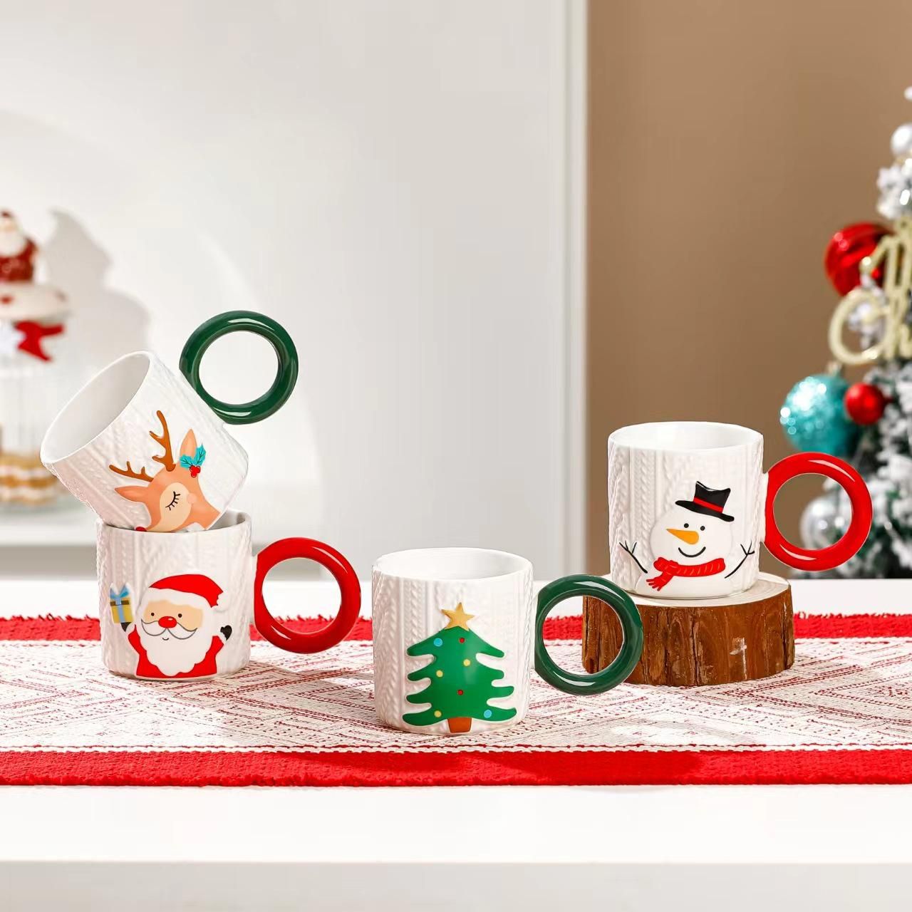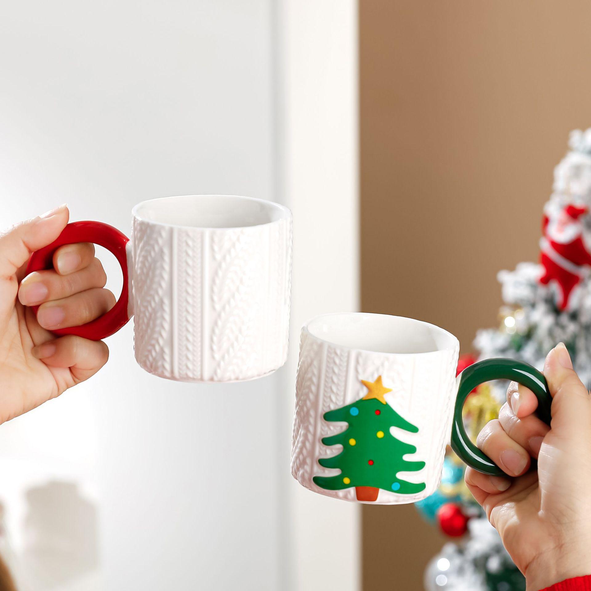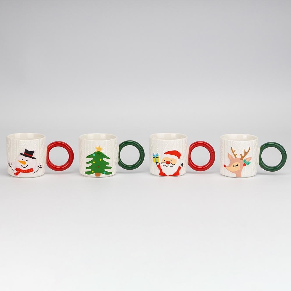 Білі керамічні горнятка з колекції Knit Joy Mugs поєднують об’ємний «в’язаный» рельєф корпусу та яскраву кільцеву ручку глянцевого червоного або зеленого кольору. На лицьовій стороні — великі святкові персонажі: Санта, оленя, ялинка, сніговик. Об’єм 280 мл дарує ідеальну порцію для ранкової кави, ароматного чаю чи густого какао — щодня з ноткою зимового свята.