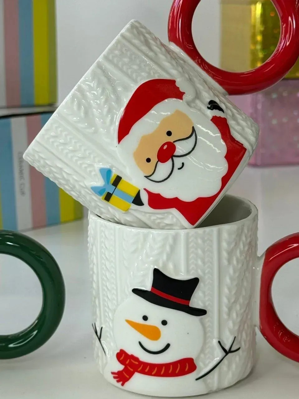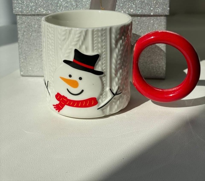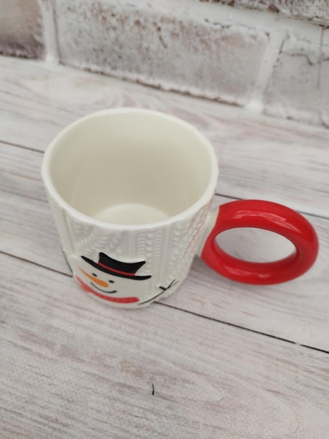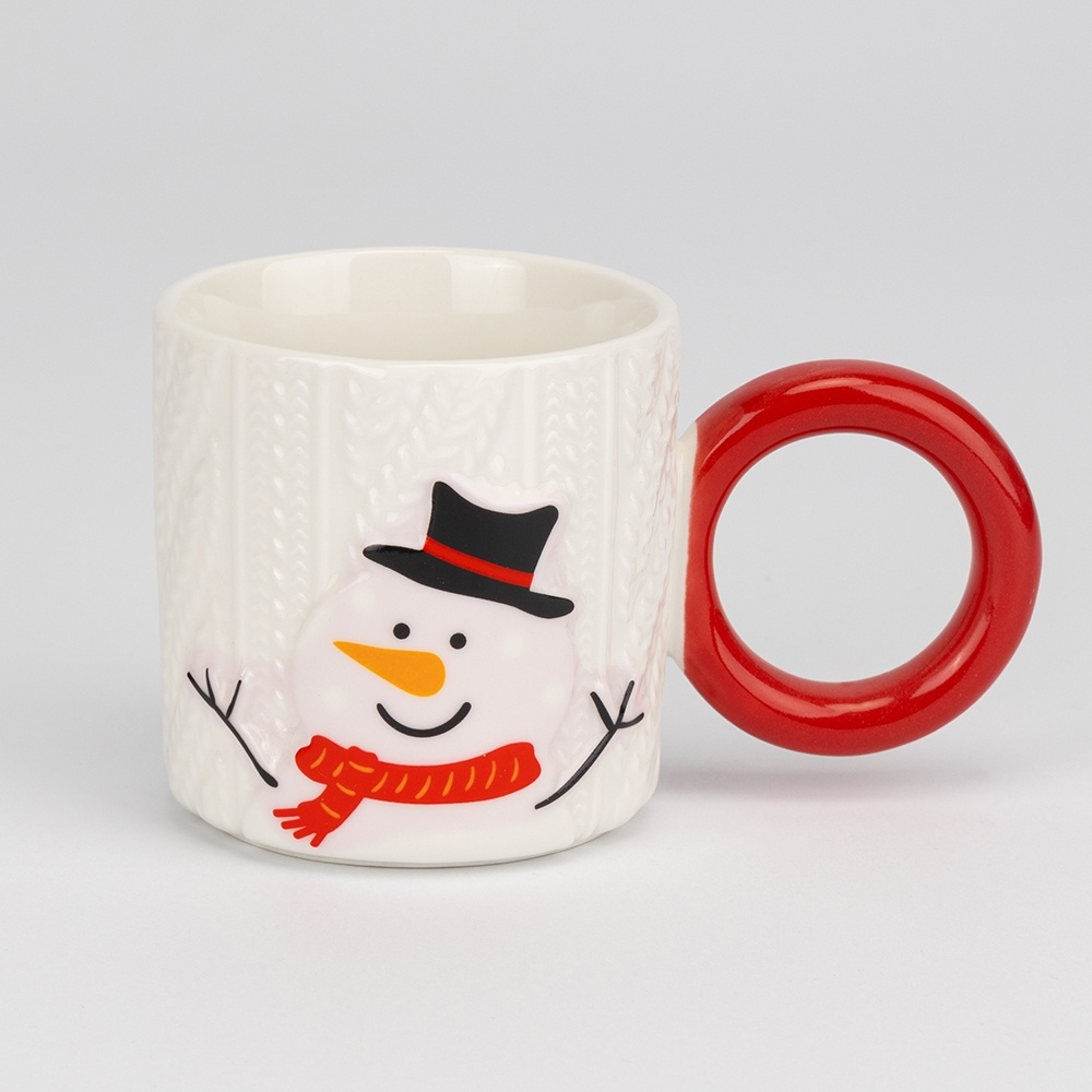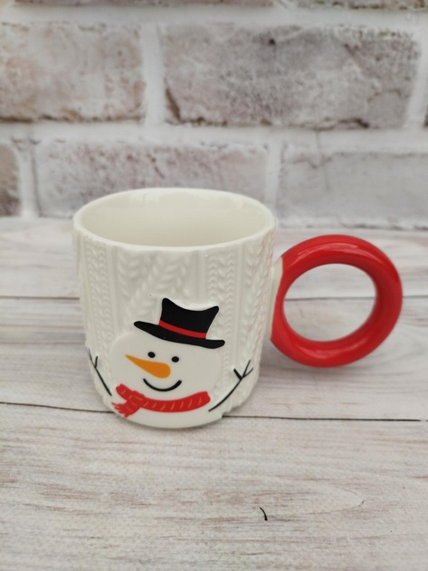 Білі керамічні горнятка з колекції Knit Joy Mugs поєднують об’ємний «в’язаный» рельєф корпусу та яскраву кільцеву ручку глянцевого червоного або зеленого кольору. На лицьовій стороні — великі святкові персонажі: Санта, оленя, ялинка, сніговик. Об’єм 280 мл дарує ідеальну порцію для ранкової кави, ароматного чаю чи густого какао — щодня з ноткою зимового свята.