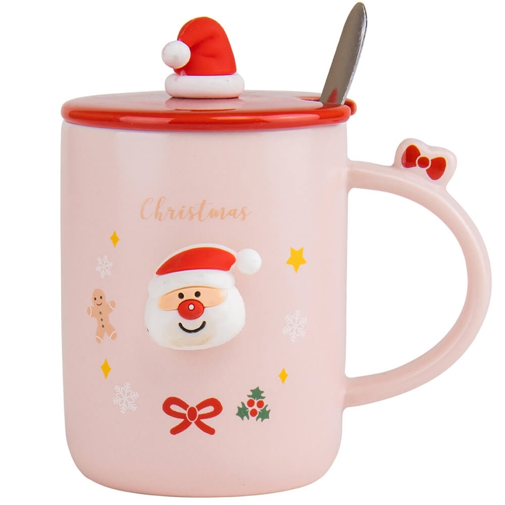 Ці керамічні горнятка з колекції Santa Mood створені, щоб додати радості у ваш зимовий день. Ніжні відтінки рожевого та білого, яскраві різдвяні малюнки із Санта-Клаусом, ялинками та сніжинками одразу викликають усмішку й дарують відчуття затишку. Червона кришка з мініатюрною шапочкою Санти та ложечка у комплекті роблять горнятко не лише красивим, а й практичним – напій довше залишається теплим.