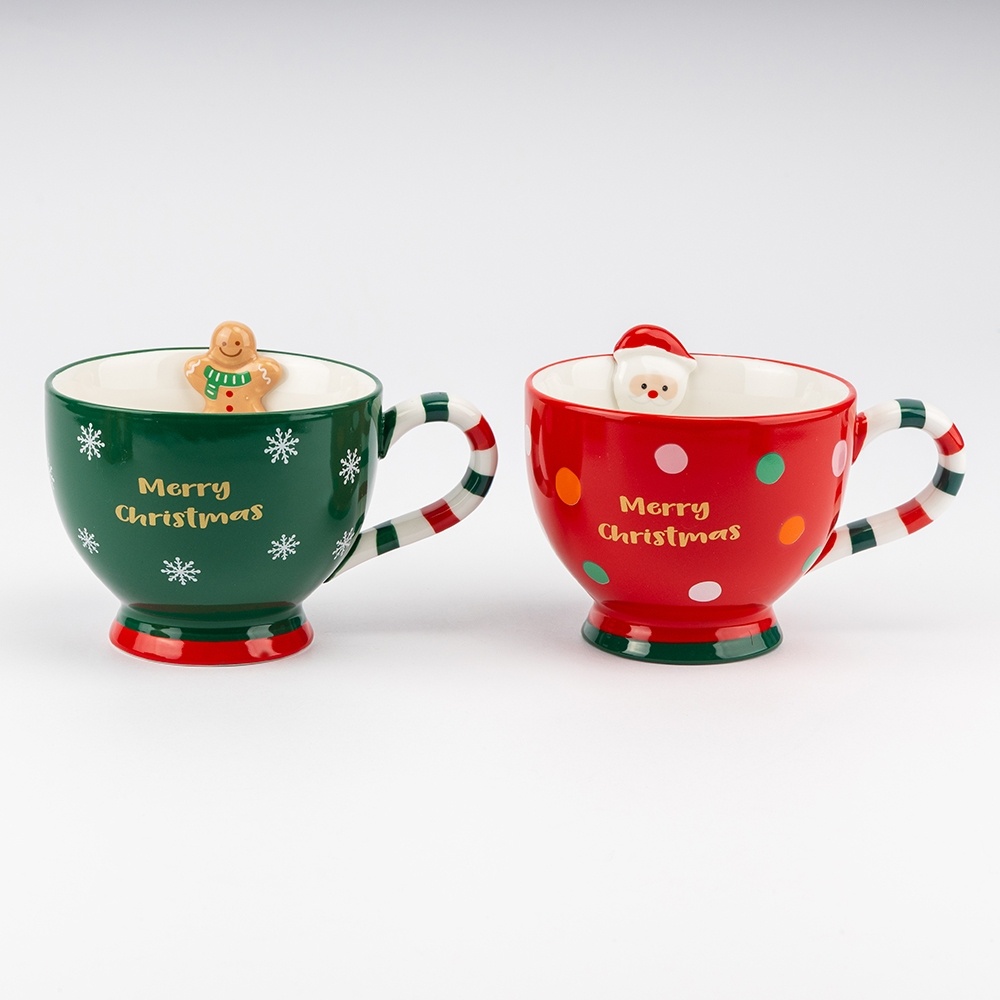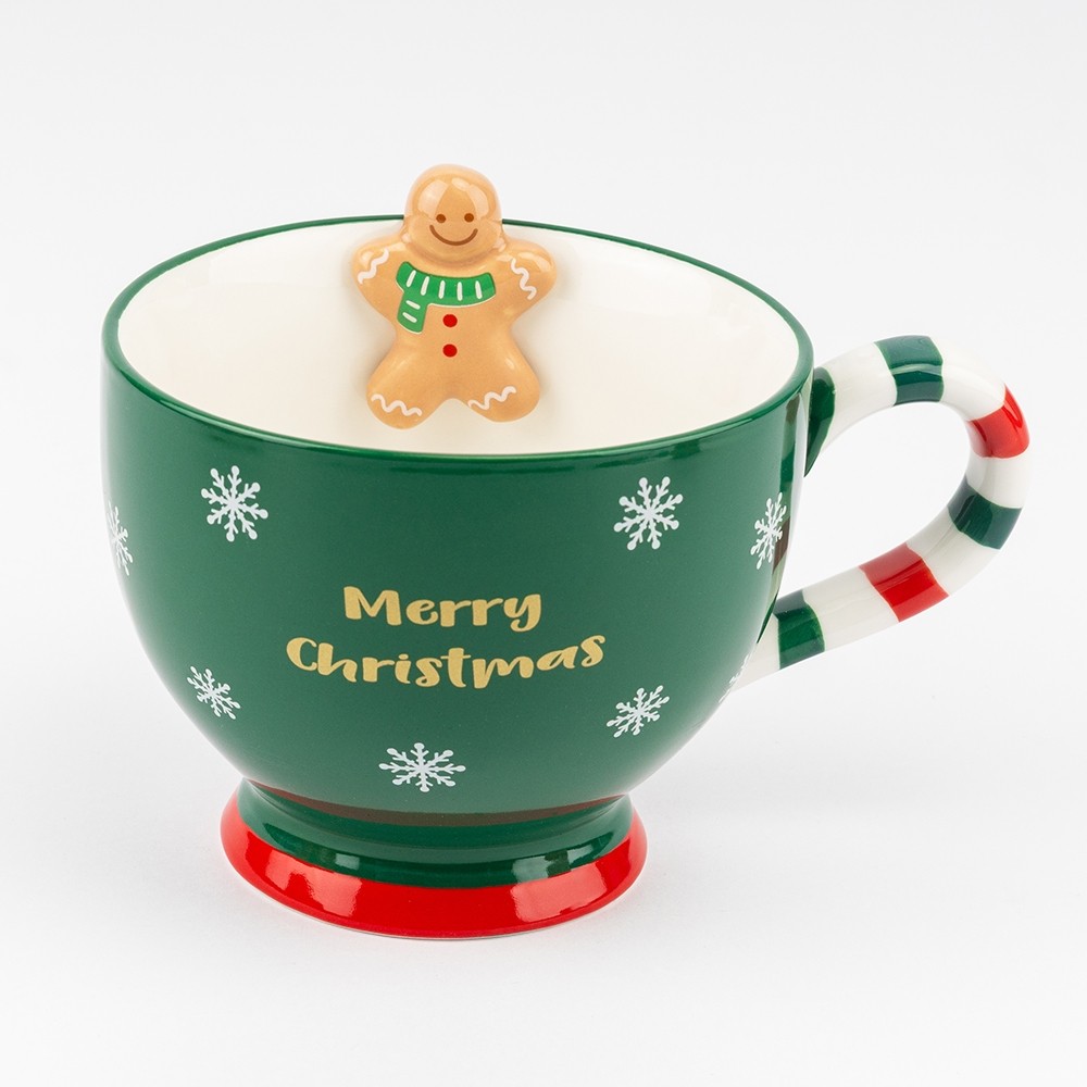 Горнятка з колекції «Sip & Celebrate» створені для тих, хто хоче відчути свято в кожному ковтку. Об’єм 550 мл робить їх ідеальними для великих порцій чаю, какао з маршмелоу чи ароматного глінтвейну в зимові вечори. Яскраві червоний і зелений кольори, кумедні фігурки пряникового чоловічка та Санти, а також написи Merry Christmas перетворюють кожне горнятко на елемент святкового декору, який тішить око та підіймає настрій.