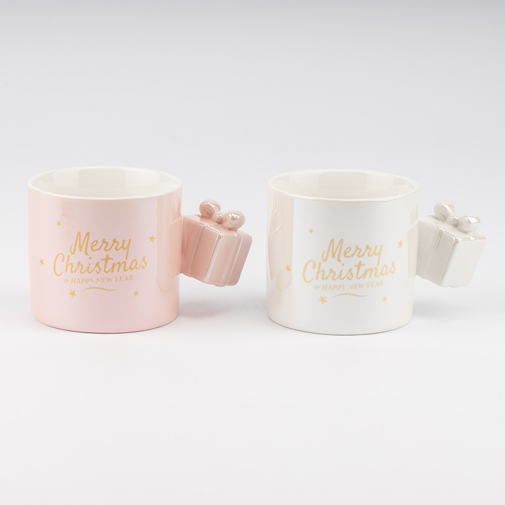 Зустрічайте Gift & Glow — ніжні святкові чашки об’ємом 340 мл із золотистим написом Merry Christmas та об’ємним «подарунком» на ручці. Ледь пудрові відтінки та розсип зірочок створюють теплу атмосферу і роблять кожну паузу смачнішою.
