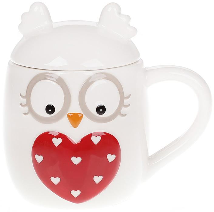 Кружки керамические с крышкой "Совушка" 460мл /2шт