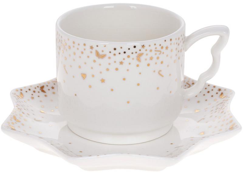 Кружка с блюдцем фарфоровая подарочная Снег 200 мл