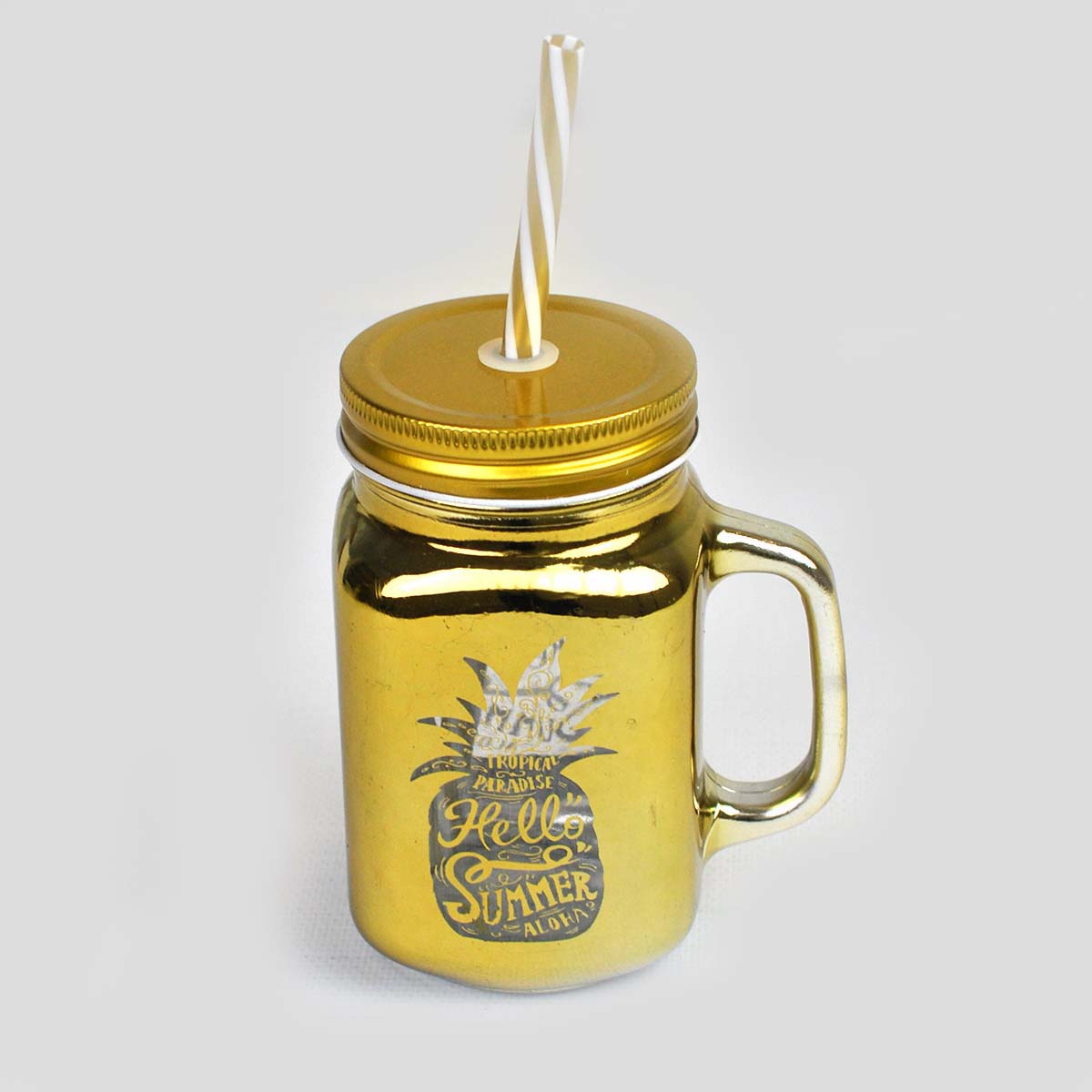 Склянка "Ананас" виконана з висококласного скла, обладнана зручною ручкою, металевою кришкою та пластиковою трубочкою. Така яскрава кружка - чудова ємність для коктейлю, представлена в трьох варіантах дизайну з оптимальною ємністю 450 мл. Ідеальне рішення в дорозі чи побуті насолодитися улюбленим напоєм.