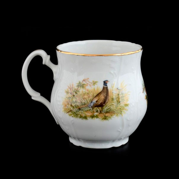 Чашка «Йонаш» Bernadotte объёмом 310 мл — это не просто фарфоровое изделие, а подлинное произведение европейского искусства, воплощающее в себе дух утончённости и традиции. Белоснежная поверхность, украшенная охотничьим мотивом с живописным изображением фазана, переносит вас в идиллический уголок природы, где каждый элемент росписи словно оживает. Благодаря мастерству чешских фарфористов, рисунок выглядит объёмным и детализированным, а золотая окантовка завершает композицию ноткой королевской элегантности.