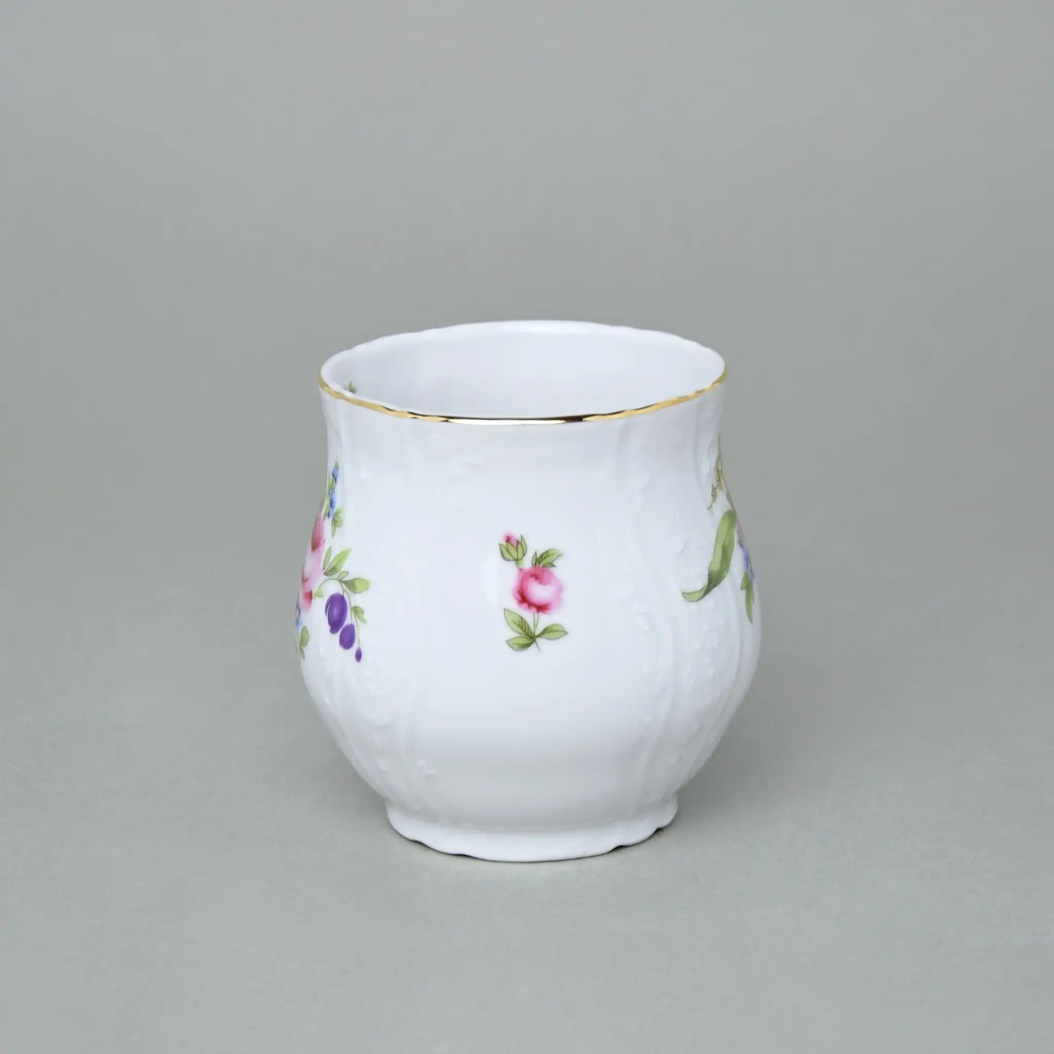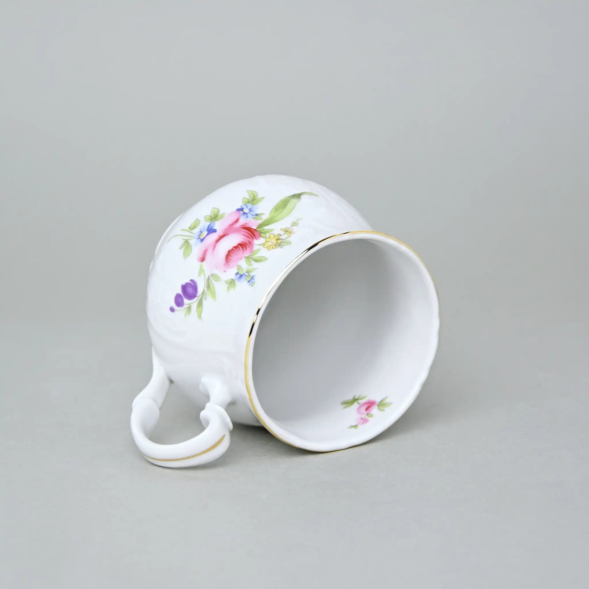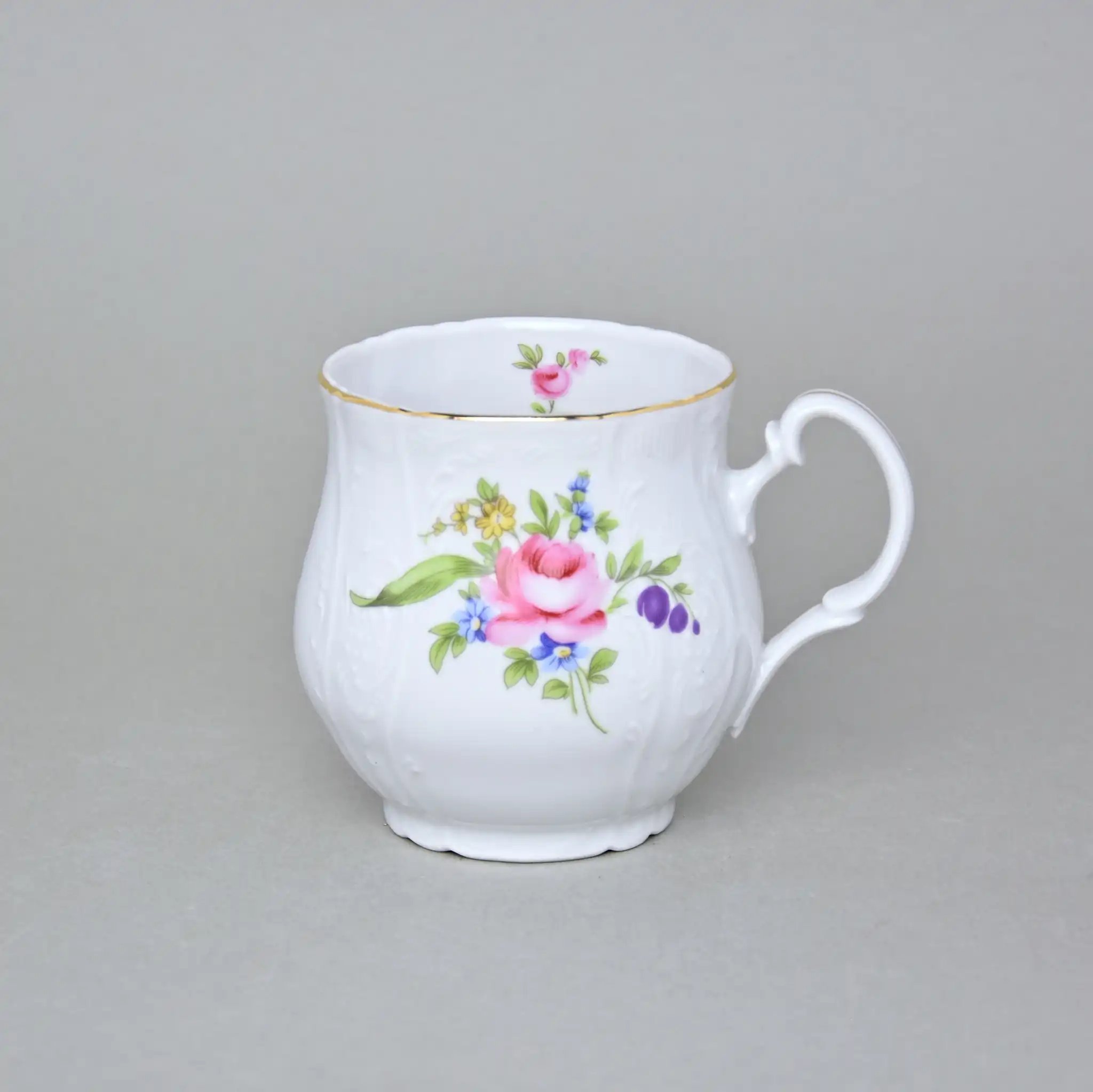 Кухоль фарфоровый белого цвета с рисунком и золотой каёмочкой Thun Bernadotte Мейсенский Букет 310 мл