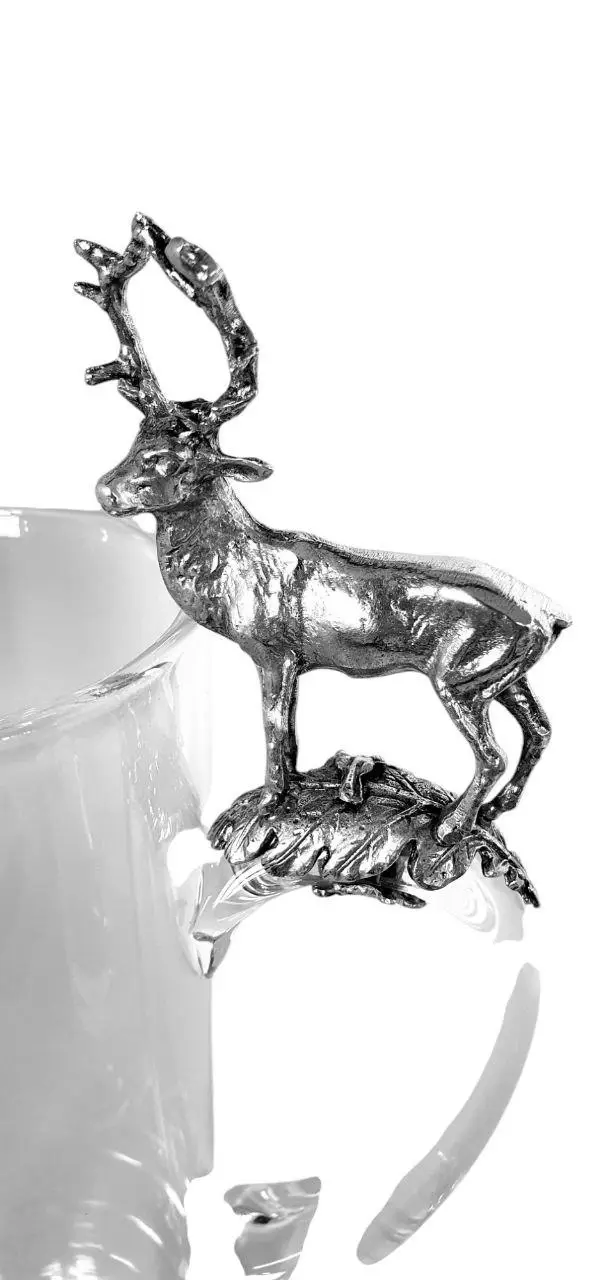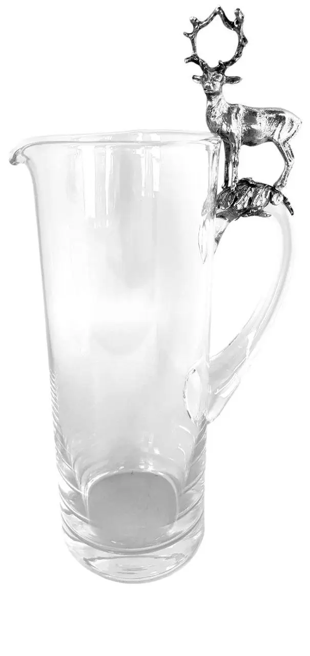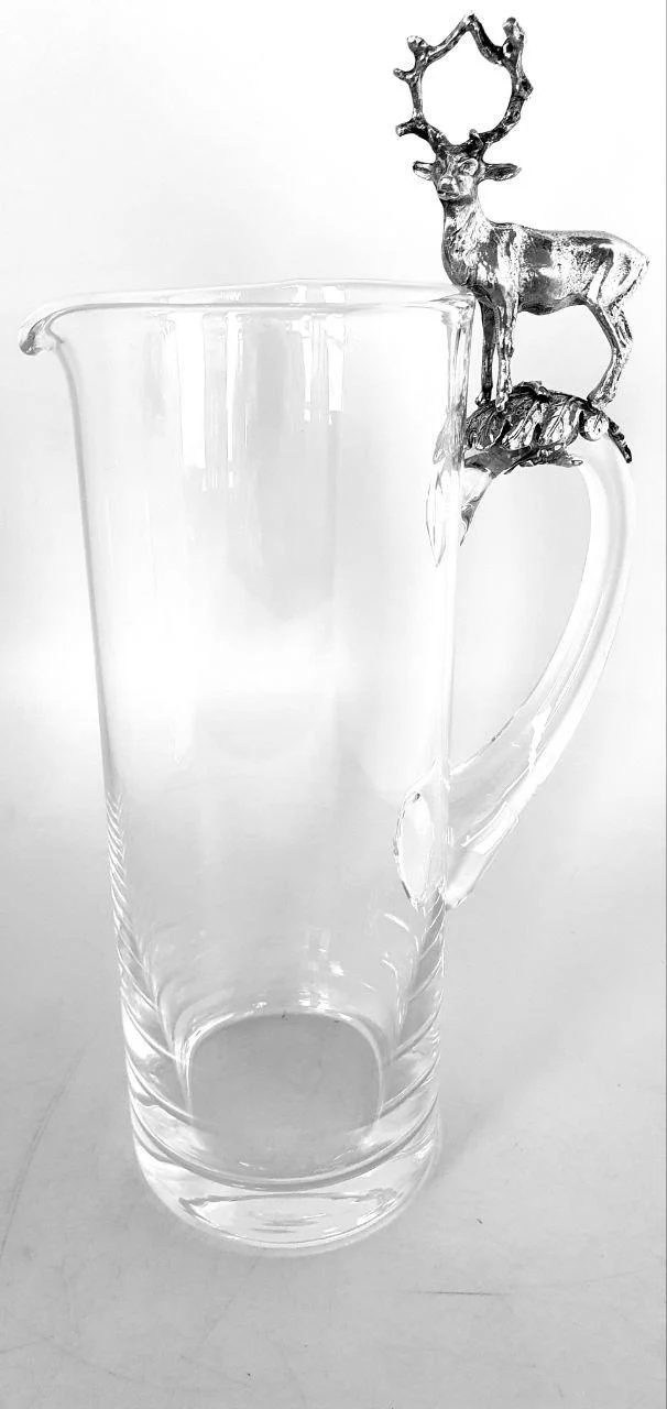 Глечик Artina "Олень" — це не просто посудина, а образ природи, сили та шляхетності, втілений у склі та олові. Висота 31 см, витончена форма, а скляне тіло поєднується з масивною основою та ручкою з харчового олова, прикрашеною об’ємною фігурою оленя — символу мужності, гідності та лісової волі.