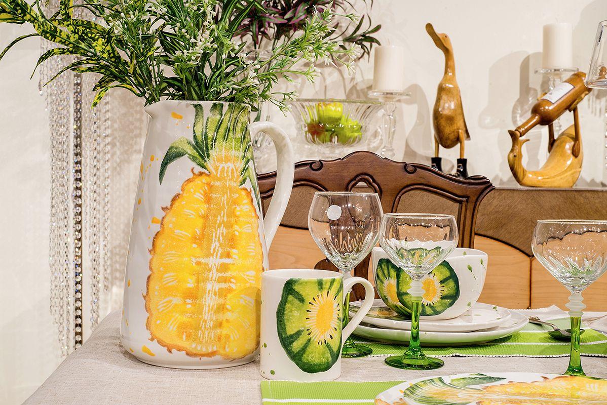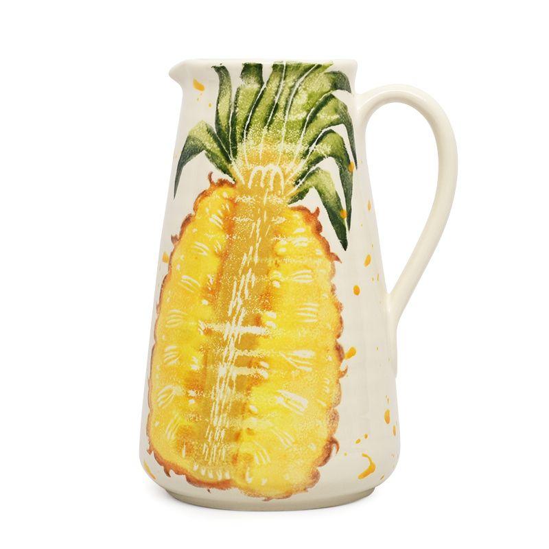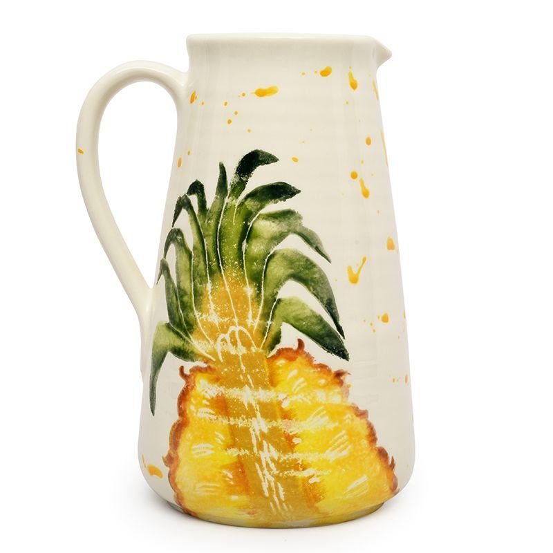 Кувшин «Фруктовый коктейль» от Villa Grazia с ярким рисунком ананаса наполняет интерьер атмосферой тропического лета. Белоснежная керамика украшена сочным жёлтым узором, который создаёт ощущение свежести и радости. Вместительный объём 4,5 л делает его идеальным для подачи лимонадов, компотов или как стильную вазу для букетов. Высота 30 см придаёт изделию изящный и эффектный силуэт. Кувшин отлично сочетается с другими предметами из коллекции и станет центром праздничной сервировки. Это не просто посуда — это деталь, которая наполняет дом солнечным теплом и уютом.