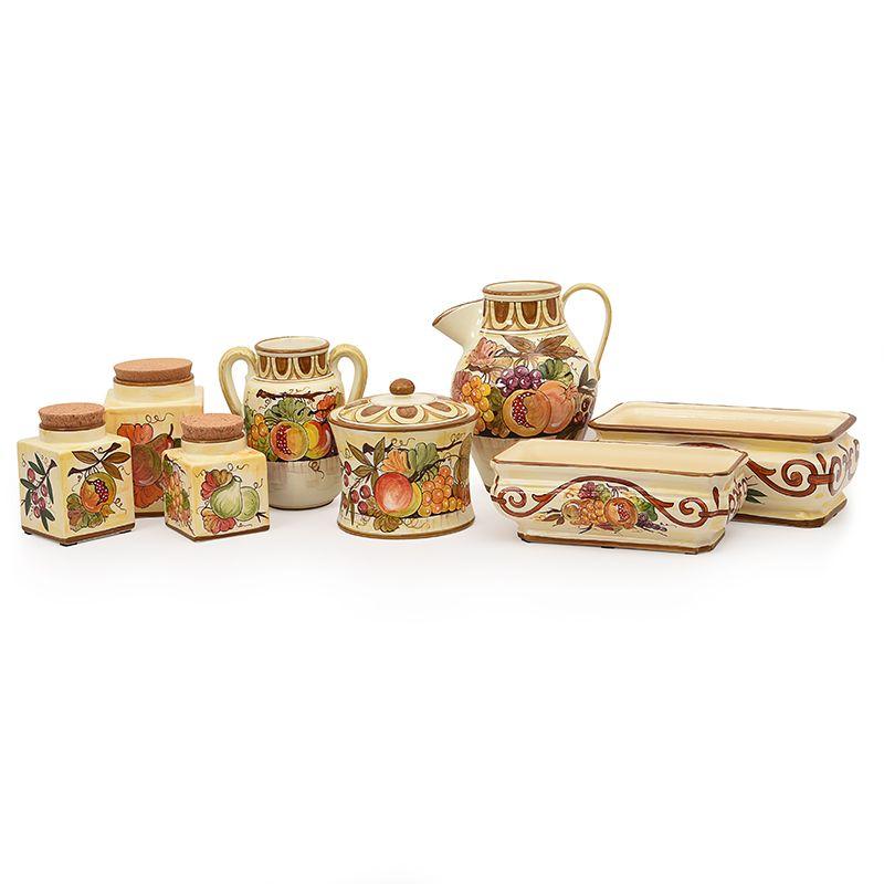 L´Antica Deruta, сделан согласно особым культурным традициям итальянского искусства. После многочасового обжига плотная и гладкая поверхность изделия была деликатно расписана вручную. Узор керамического кувшина с двумя ручками из коллекции Frutta Di Campo – это по-настоящему летний фруктовый натюрморт, демонстрирующий изобилие итальянских земель: персик, гранат, виноград, окруженные крупными листьями и завитушками лозы. С тыльной стороны кувшина изображена ветвь мандаринового дерева со спелыми фруктами. Кувшин также можно использовать, как вазу для цветов.