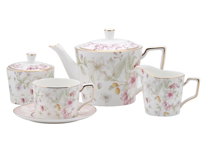 Оригинальный набор фарфоровой питьевой посуды белого цвета с нежным рисунком цветов на 6 персон . Такой набор идеально подойдет для любого торжественного события , ведь качественный и красивый чайный набор - это залог приятного впечатления от чаепития . Привлекательный чайный набор всегда окажется полезным , если необходимо сделать подарок для близкого человека .