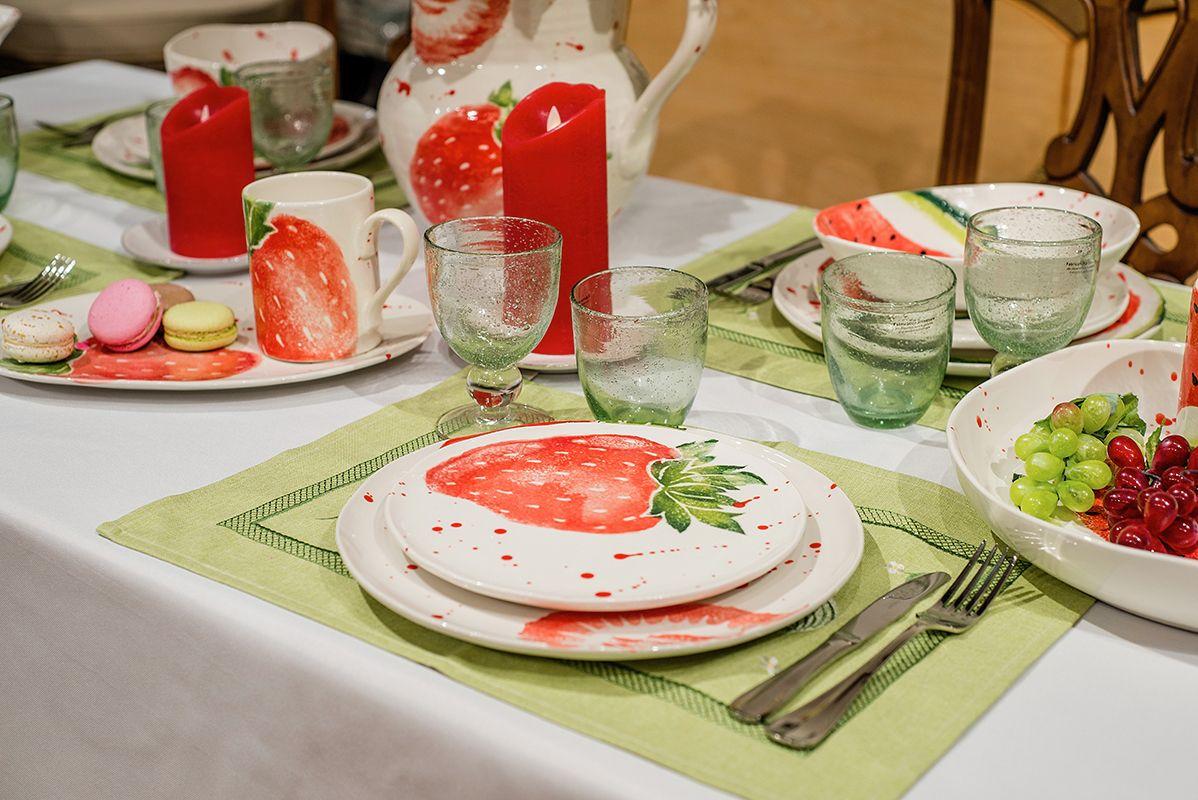Десертна тарілка «Фруктовий коктейль» з полуницею від Villa Grazia — уособлення літньої свіжості та легкості. На білосніжній поверхні кераміки яскраво вирізняється соковита полуниця, розписана вручну з любов’ю до деталей. Кожна тарілка ніби зберігає аромат стиглих ягід і ранкового сонця, створюючи атмосферу затишку та радості за столом.