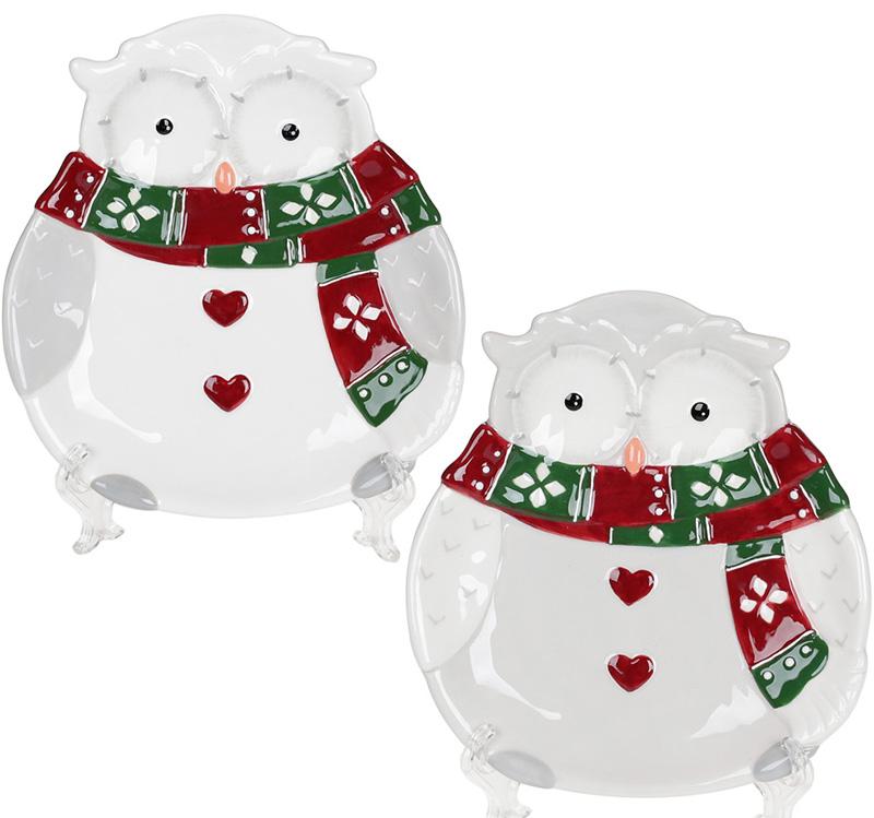 Маленькие тарелки керамические Новогодняя сова 4 шт