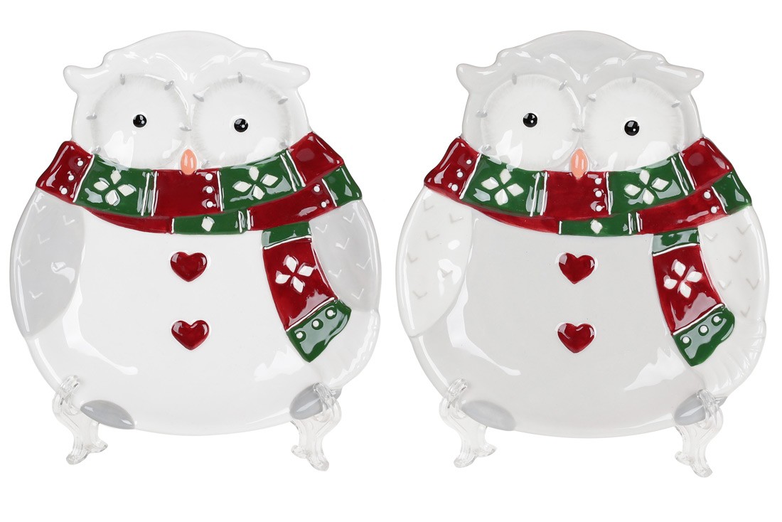 Тарелки из керамики выполнены в нежных тонах с яркой изюминкой - цветным шарфиком. В наборе 2 дизайна. Керамическая столовая посуда коллекции «Новогодняя сова» обладает высокой прочностью, глазурь устойчива к появлению царапин и трещин.