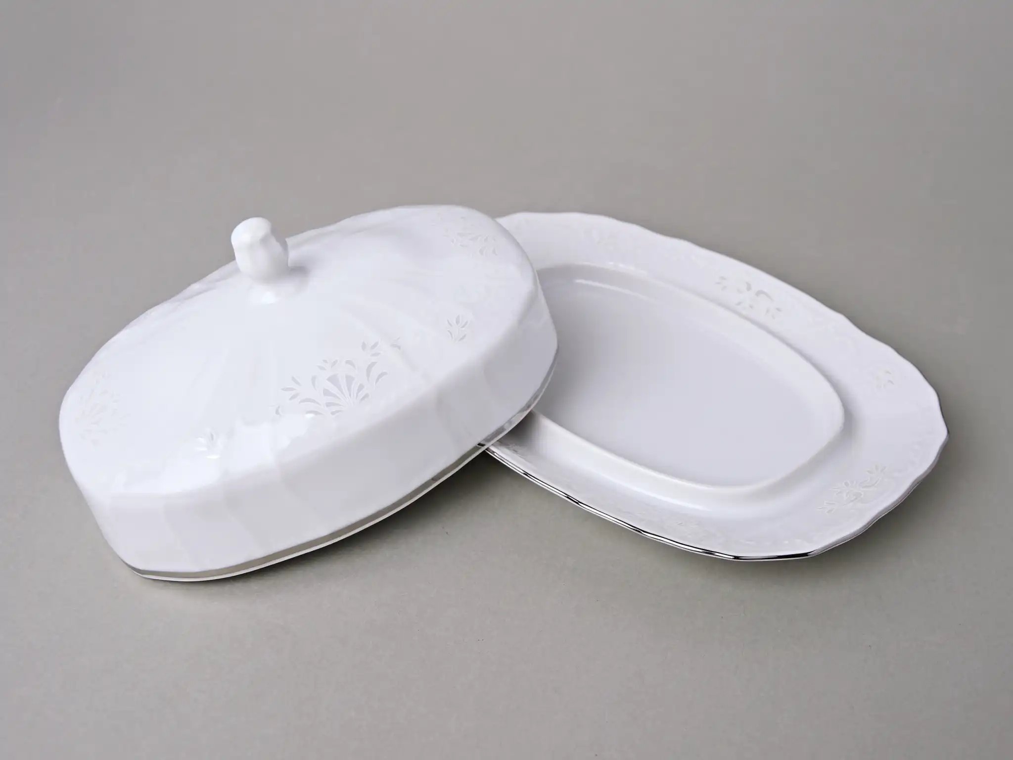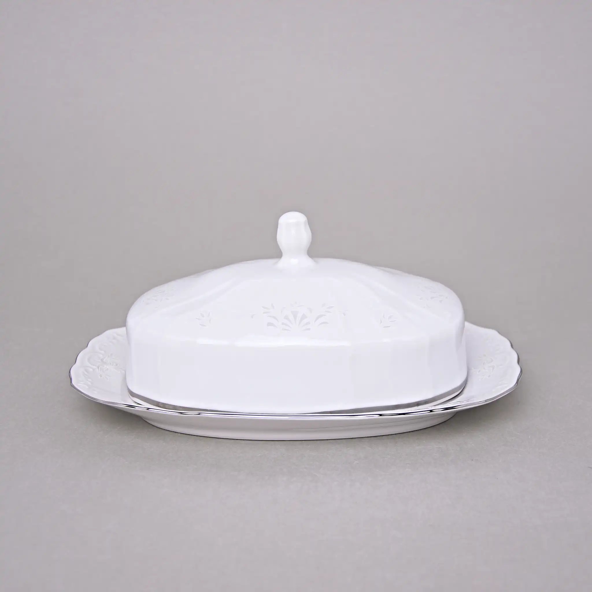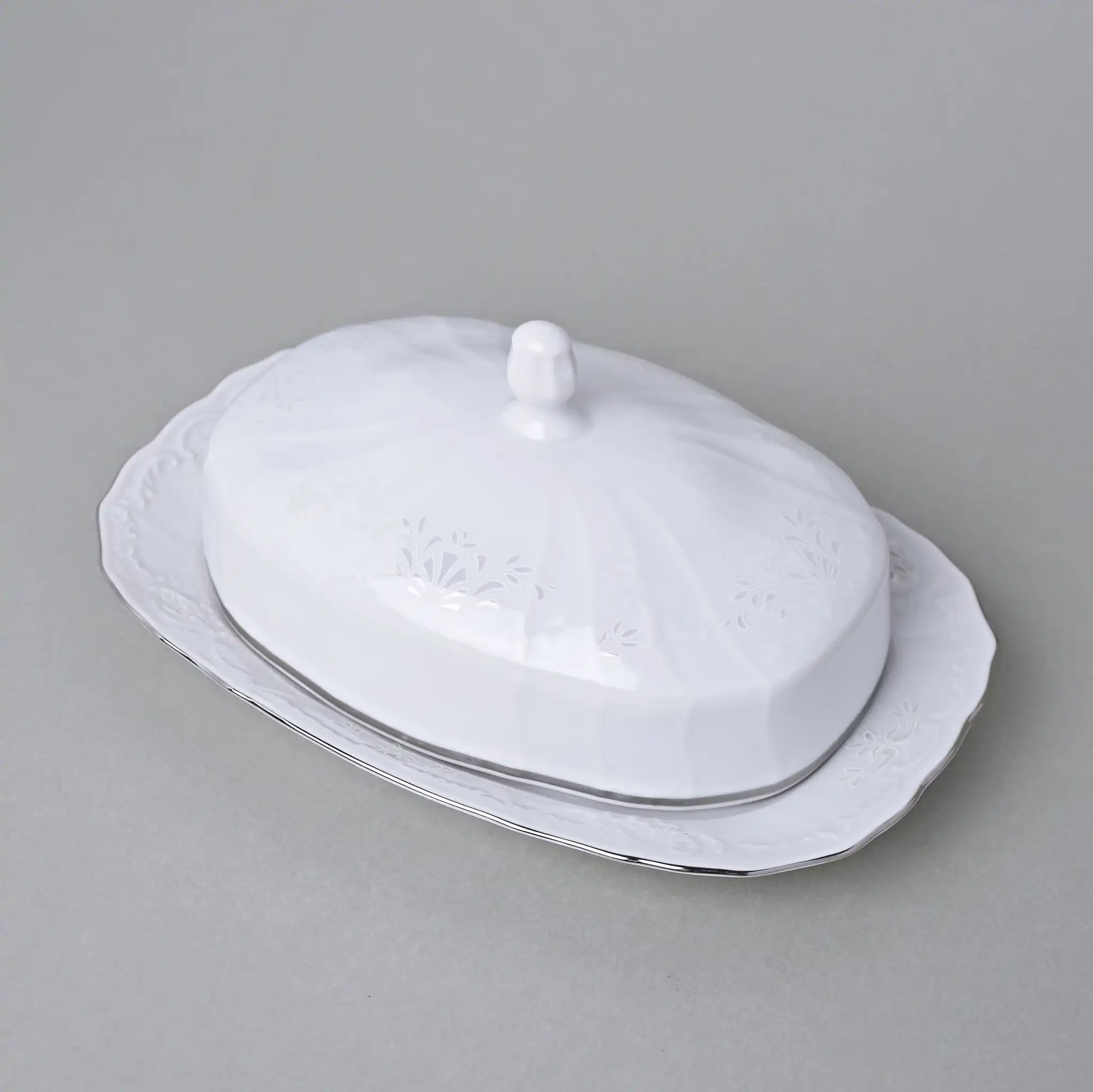 Масленка фарфоровая белого цвета с платиновой каймой Thun Bernadotte Невеста