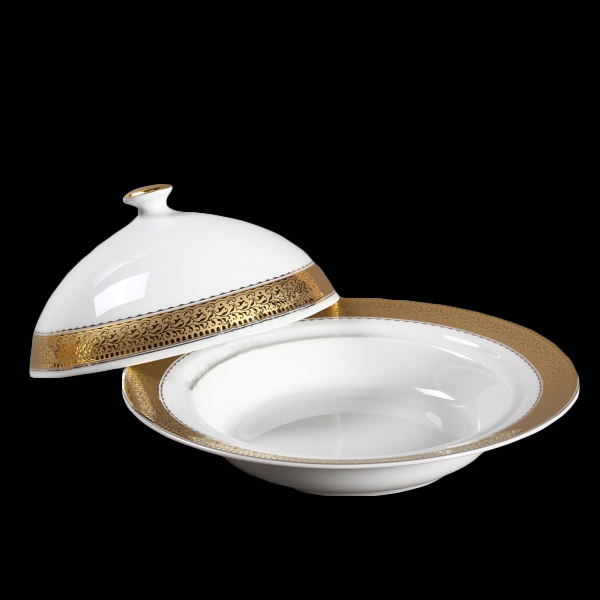 Пред вами — круглая маслёнка Opal, воплощение утончённой классики в повседневной сервировке. Её изысканный дизайн с королевским золотым орнаментом по краю превращает обычный завтрак в настоящий праздник. Белоснежный фарфор и плавные формы придают ей вид антикварной драгоценности.