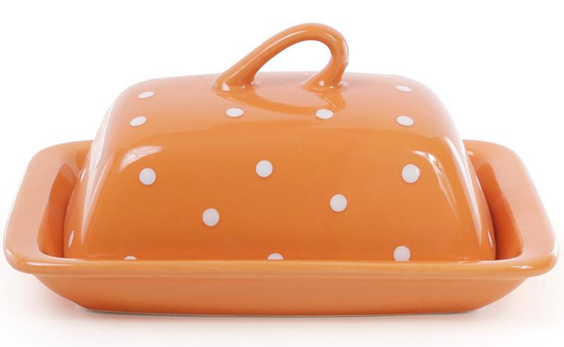 Масляна керамічна Білий горошок 21х12х16.5см, помаранчева