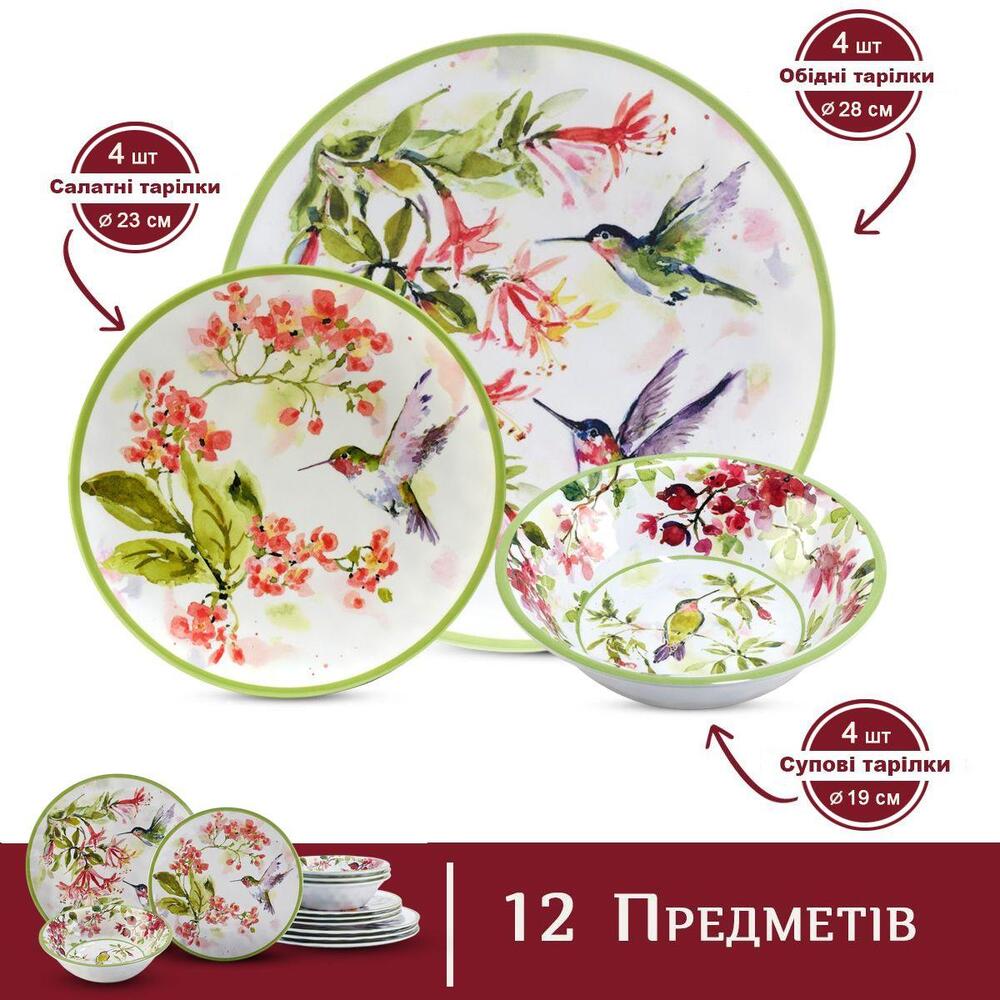 Ударостійкий меламиновый сервіз на 4 персони Колібрі з 12 предметів