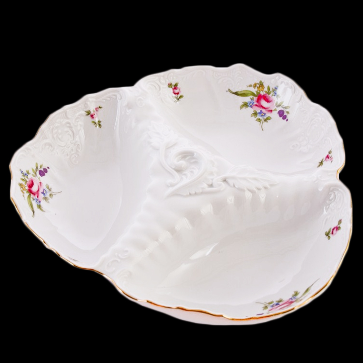 Фарфоровая менажница Thun Bernadotte «Мейсенский Букет» — это не просто посуда, а воплощение утончённого вкуса и европейской классики. Её форма с тремя глубокими секциями словно лепестки цветка, раскрывающегося навстречу свету. Каждая деталь — от изящного рельефа до тонкой золотой каймы — продумана, чтобы подчеркнуть изысканность вашей сервировки.