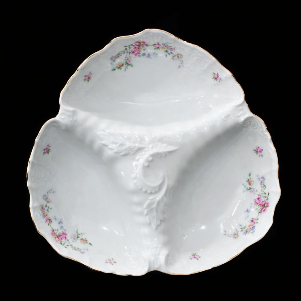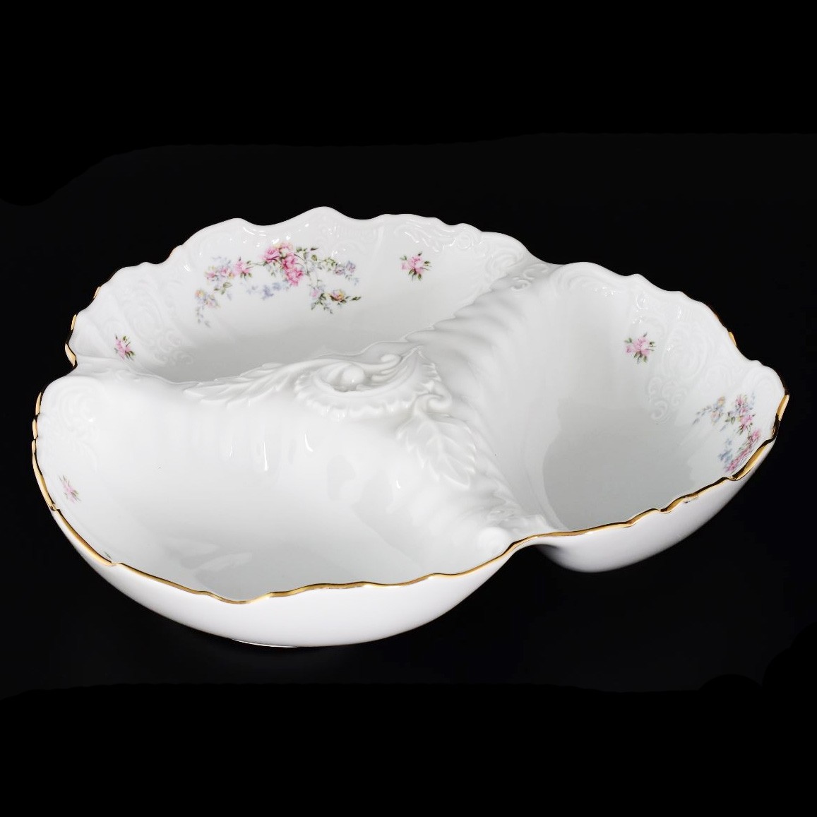 Менажница фарфоровая белого цвета с декором и золотой каймой Thun Bernadotte Дикая Роза