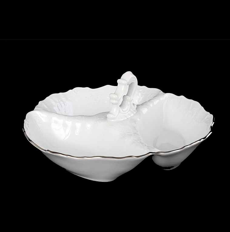 Менажниця маленька порцелянова білого кольору з платиновим обрамленням Thun Bernadotte Наречена 25 см
