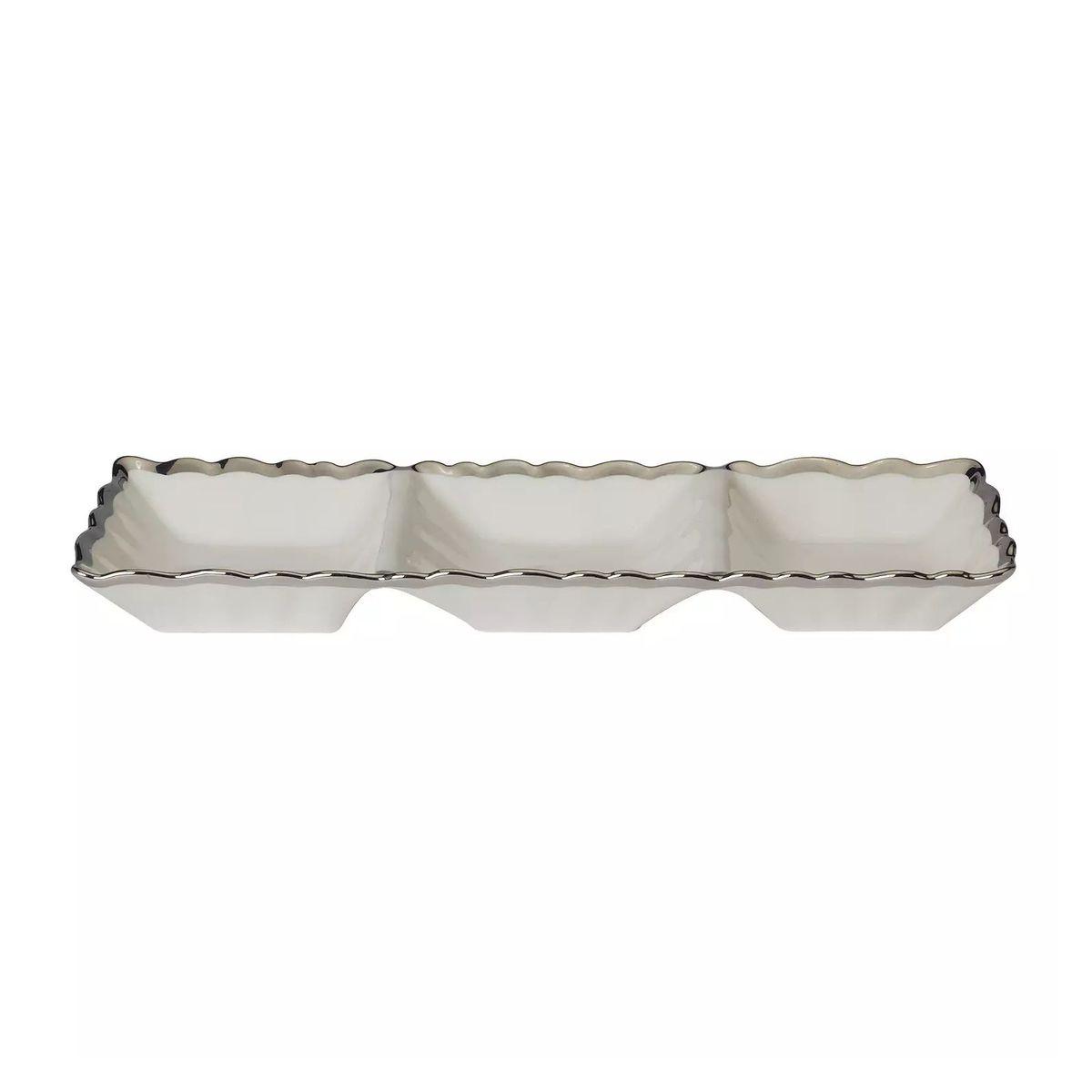 Менажниця на 3 секції керамічна зі срібним кантом Regency Silver