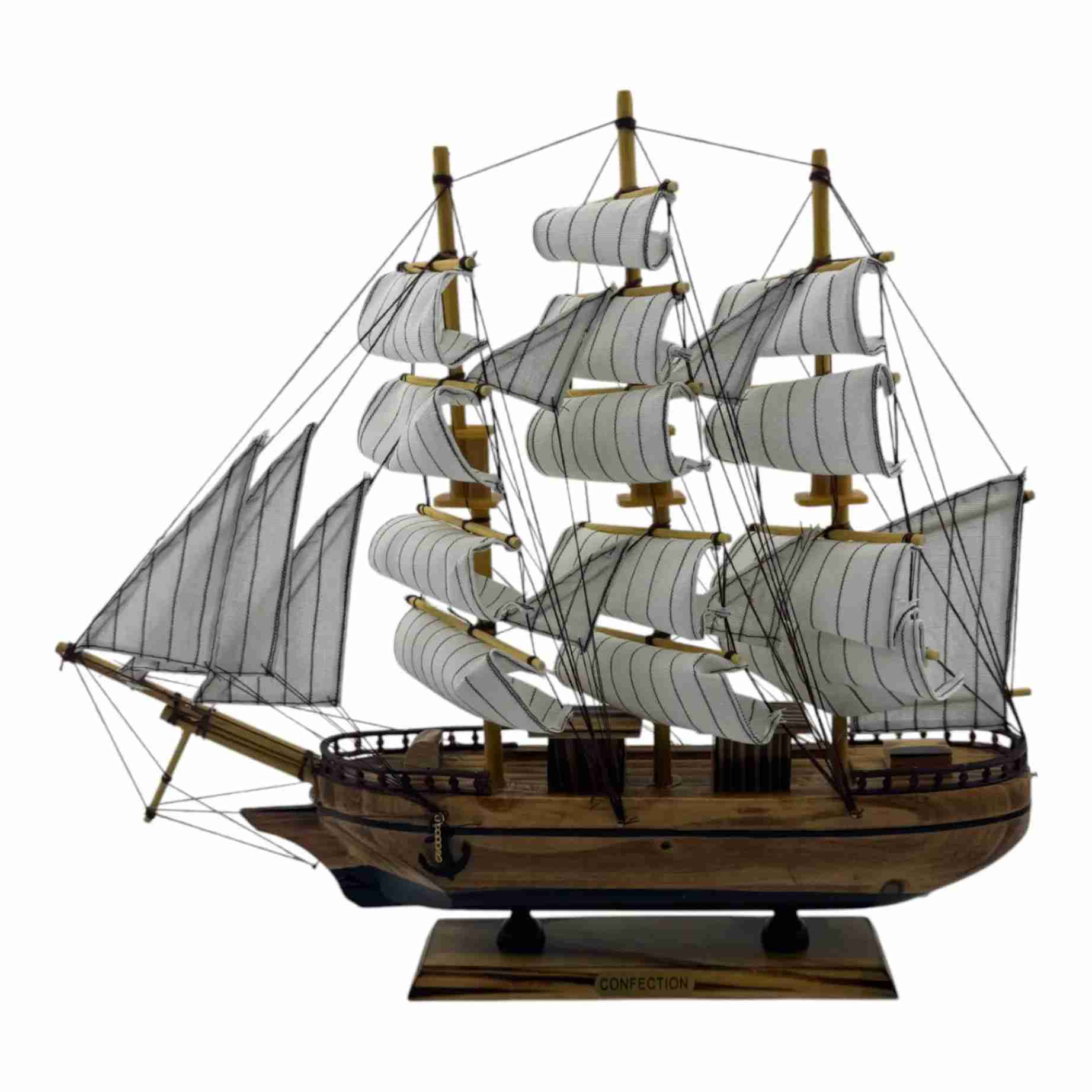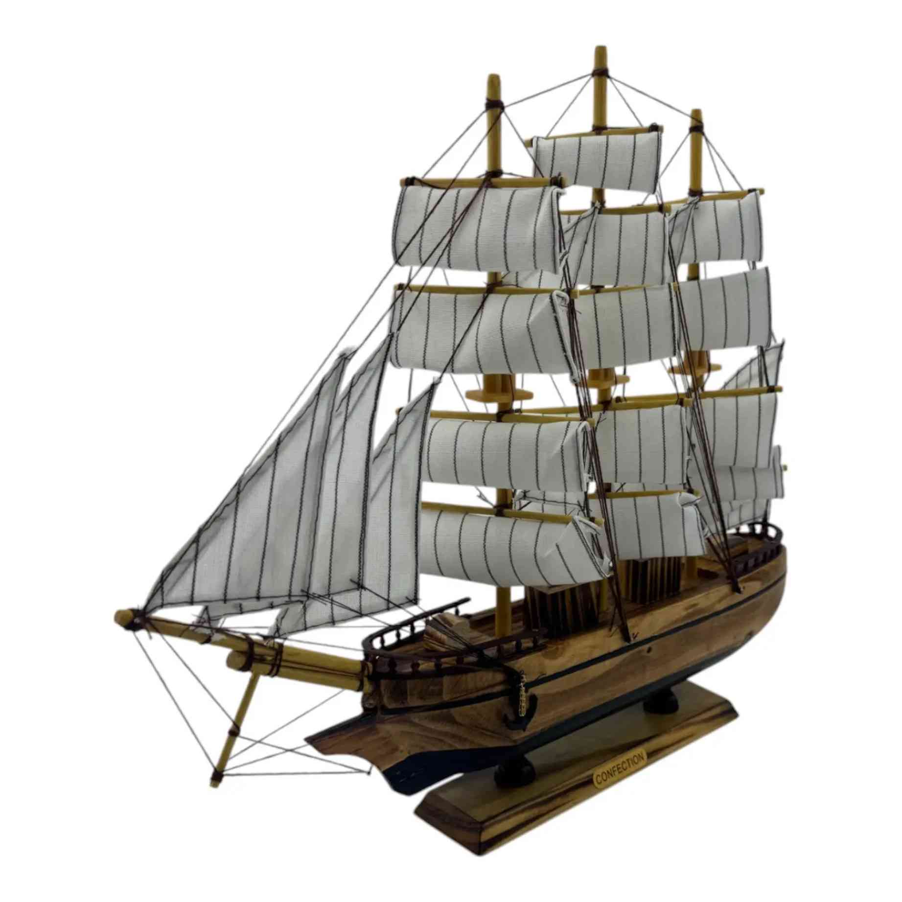 Компактная модель парусника из дерева и ткани — эффектный элемент декора и удачный подарок для любителей морской тематики